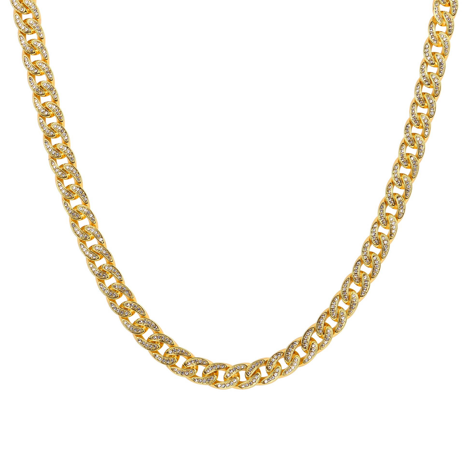 CREW cuban chain is a meticulously crafted solid cuban link chain in fully iced out and studded with flawless rhinestone crystals set to precision. Wear it on a night out of town or on a T-Shirt just out and about. Wear it with confidence