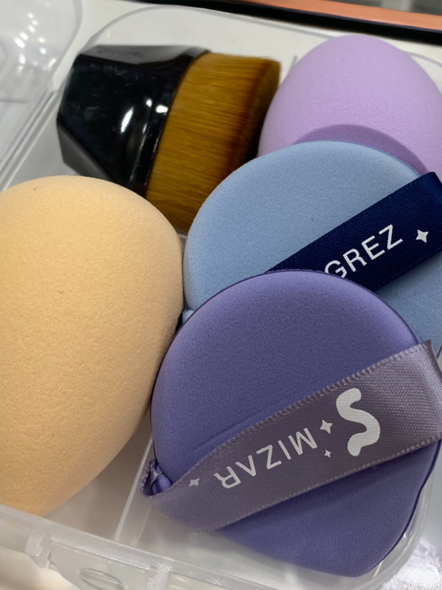 The Finger Puff is perfect for precision. These puffs fit snugly on your fingers, allowing you to effortlessly apply foundation, concealer, or cream blush directly where you need it. The lightweight material provides a smooth application, making it ideal for touch-ups on the go.