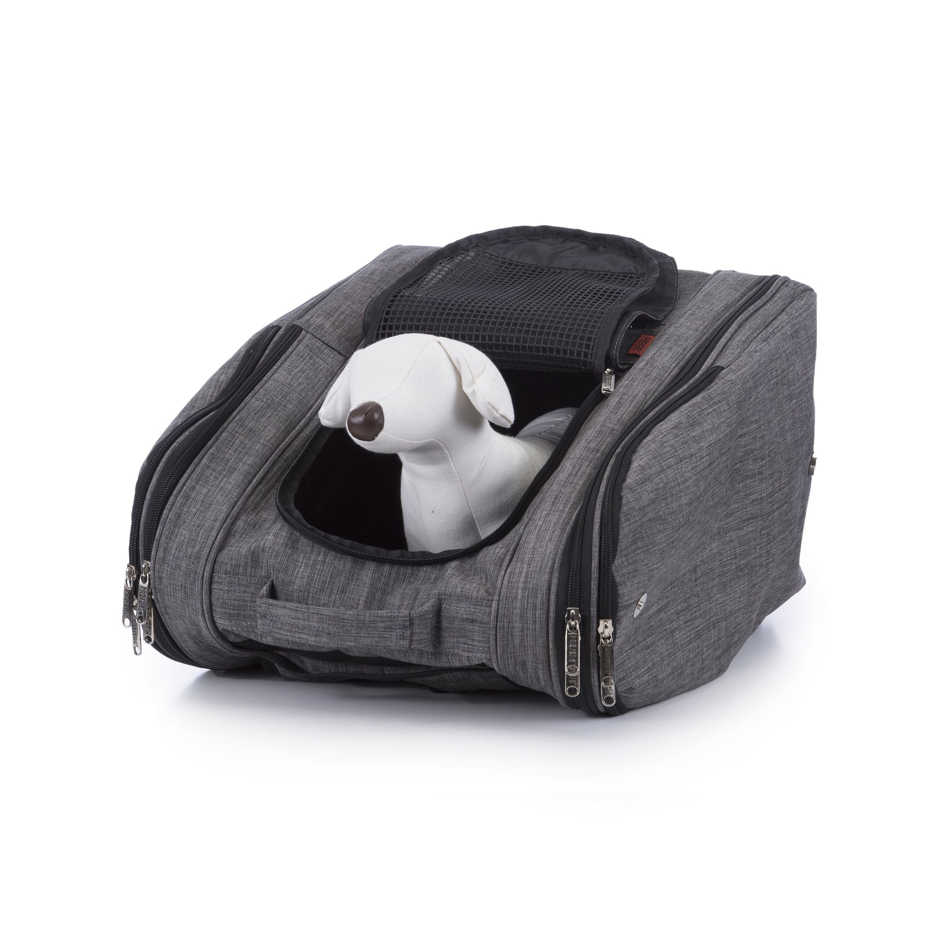 Adventure Backpack Carrier lays flat to become a pet cocoon/bed, a home away from home while traveling in-cabin on airplane or in unfamiliar hotel rooms.