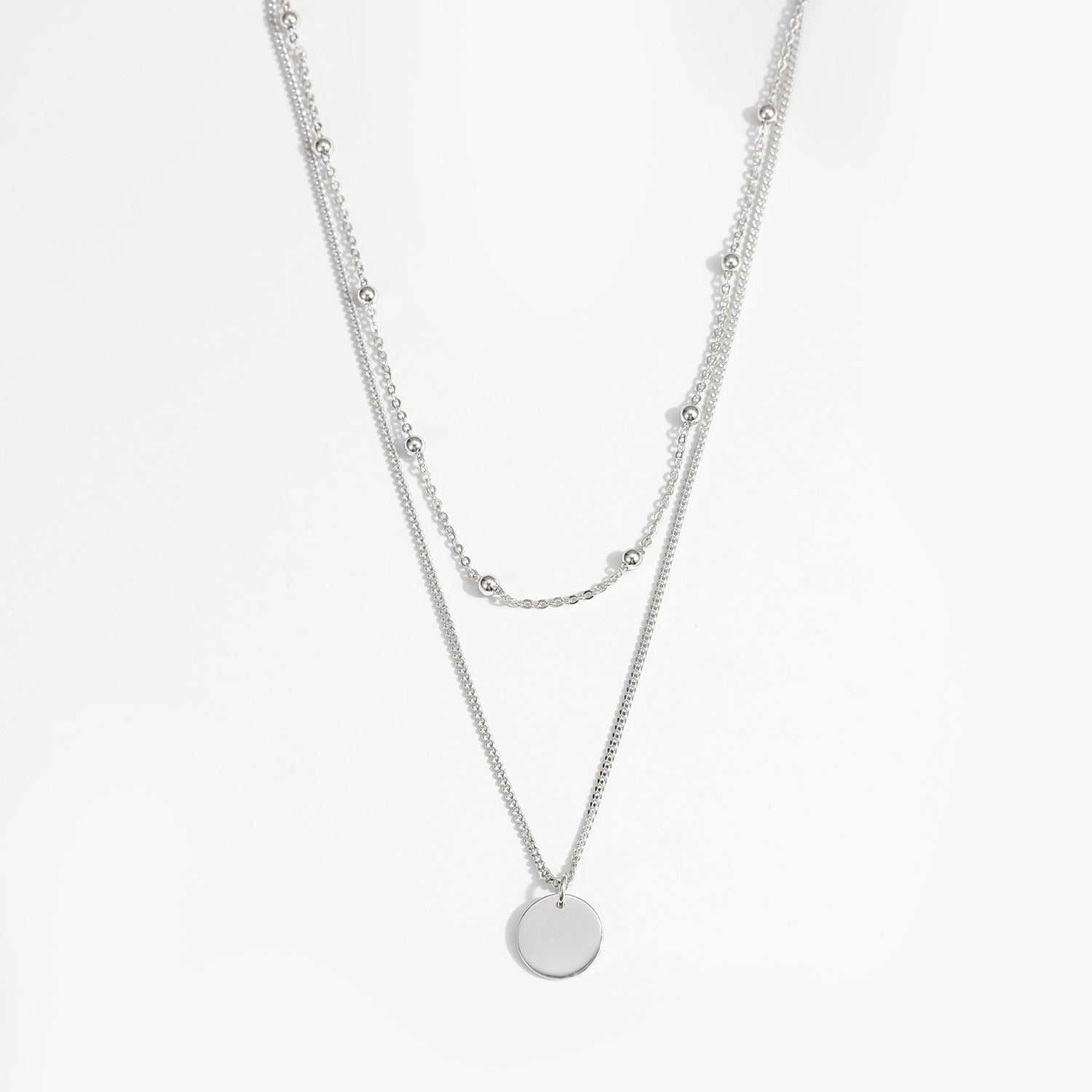 Choker Double Beads Chain Tag Coin 925 Sterling Silver Necklace