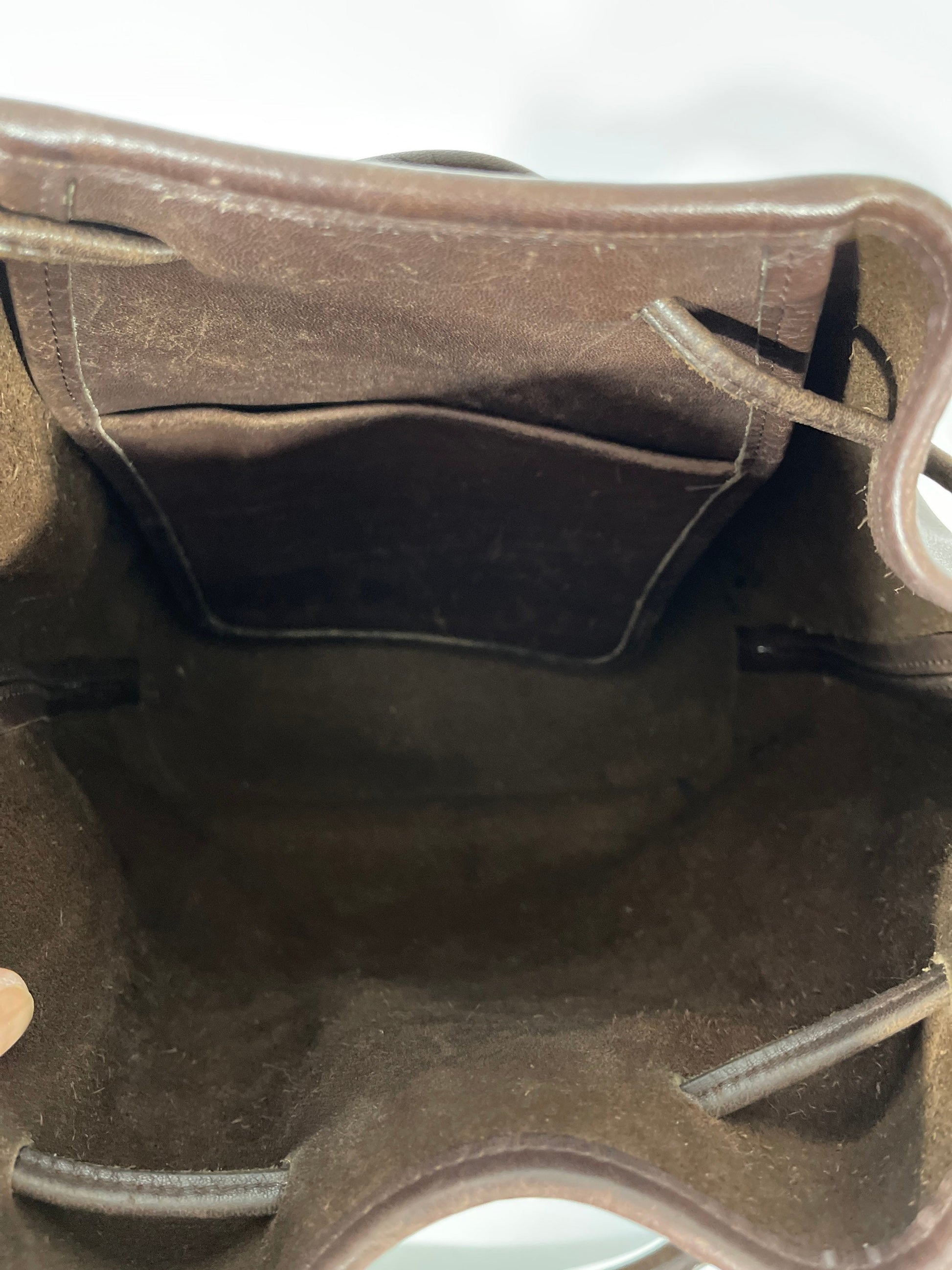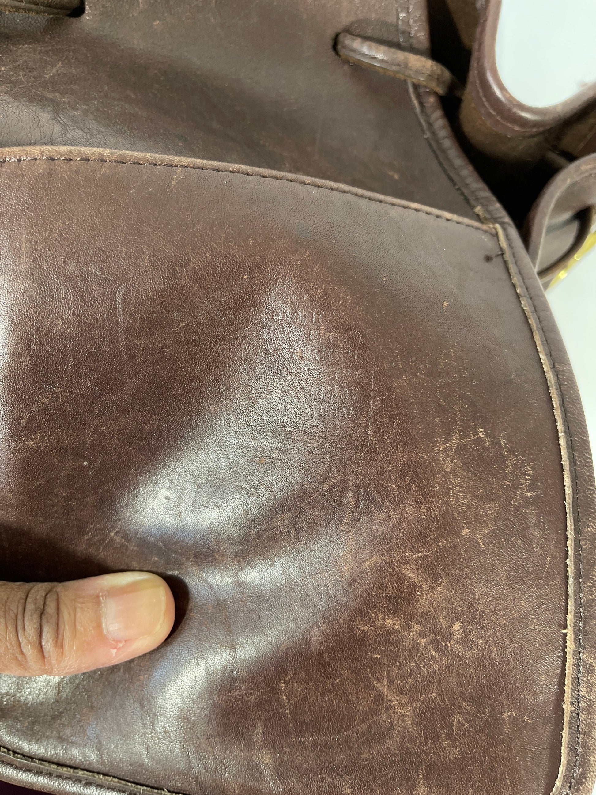 Bag is in very good vintage condition with minor scratches to leather. Clean interior. Creed stamp has worn down but is still readable.