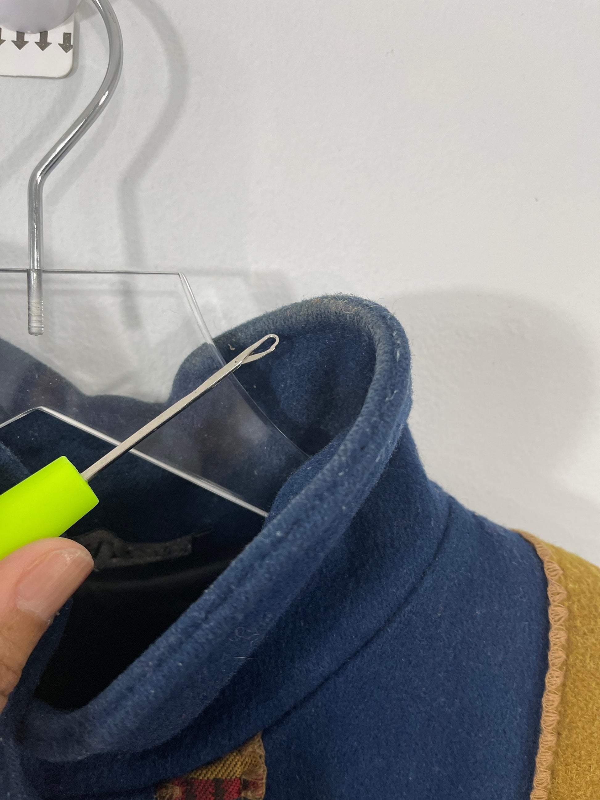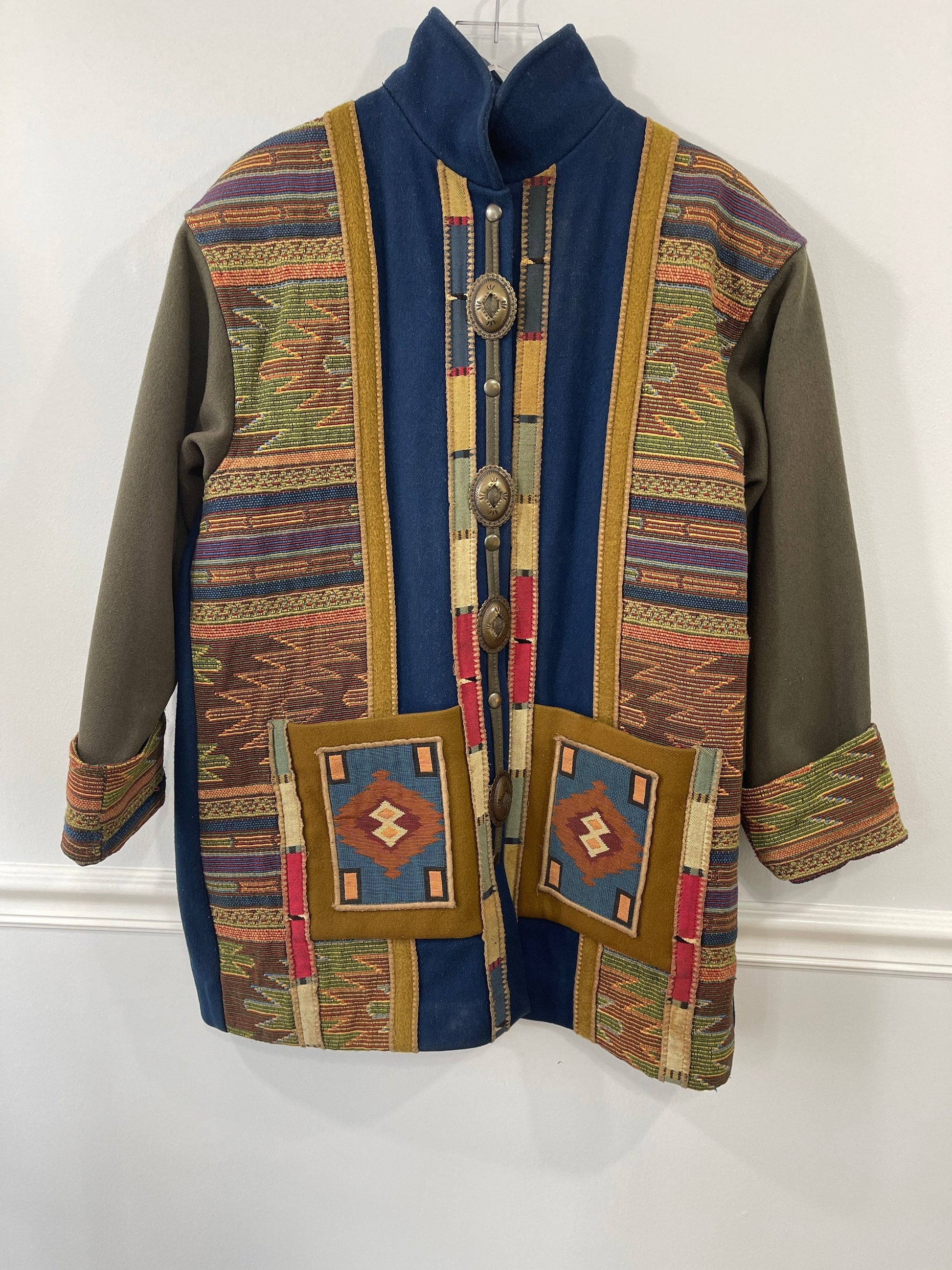 Coloratura Wool Colorblock Green & Blue Southwestern Concha Car Coat sz L/XL