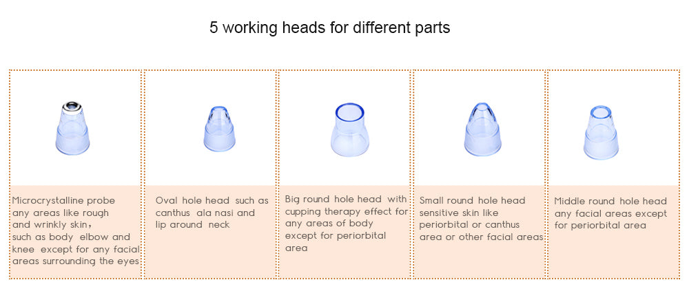 Comes with five suction heads and three level of suction adjustment to meet different needs.