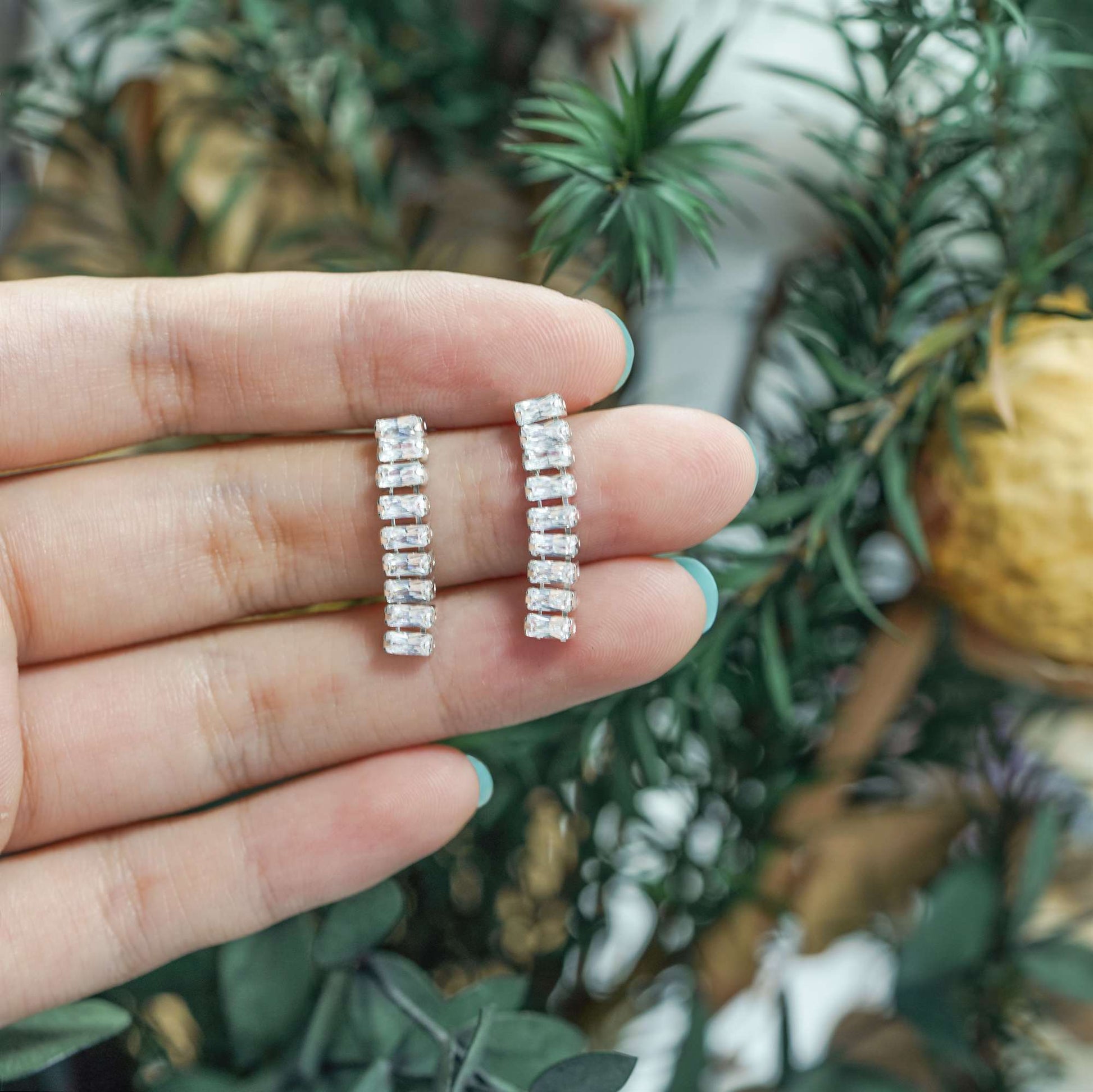 Elegant CZ Chain 925 Sterling Silver Dangling Earrings