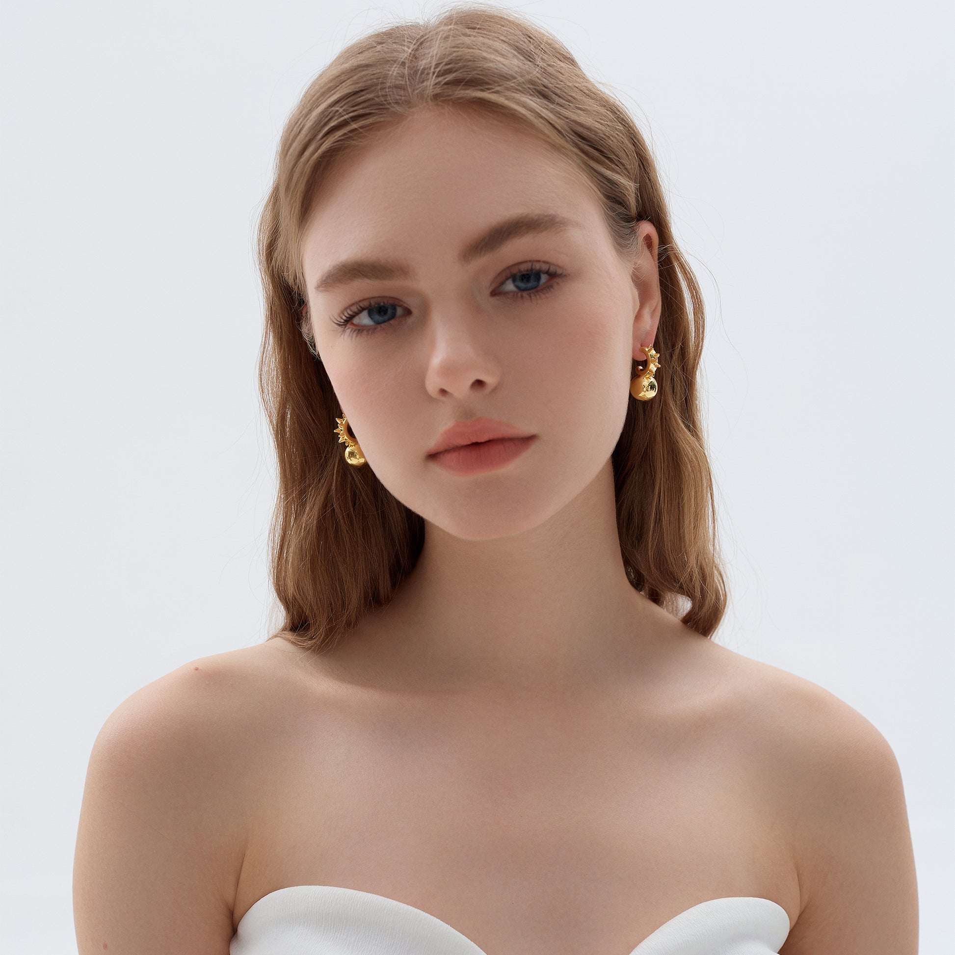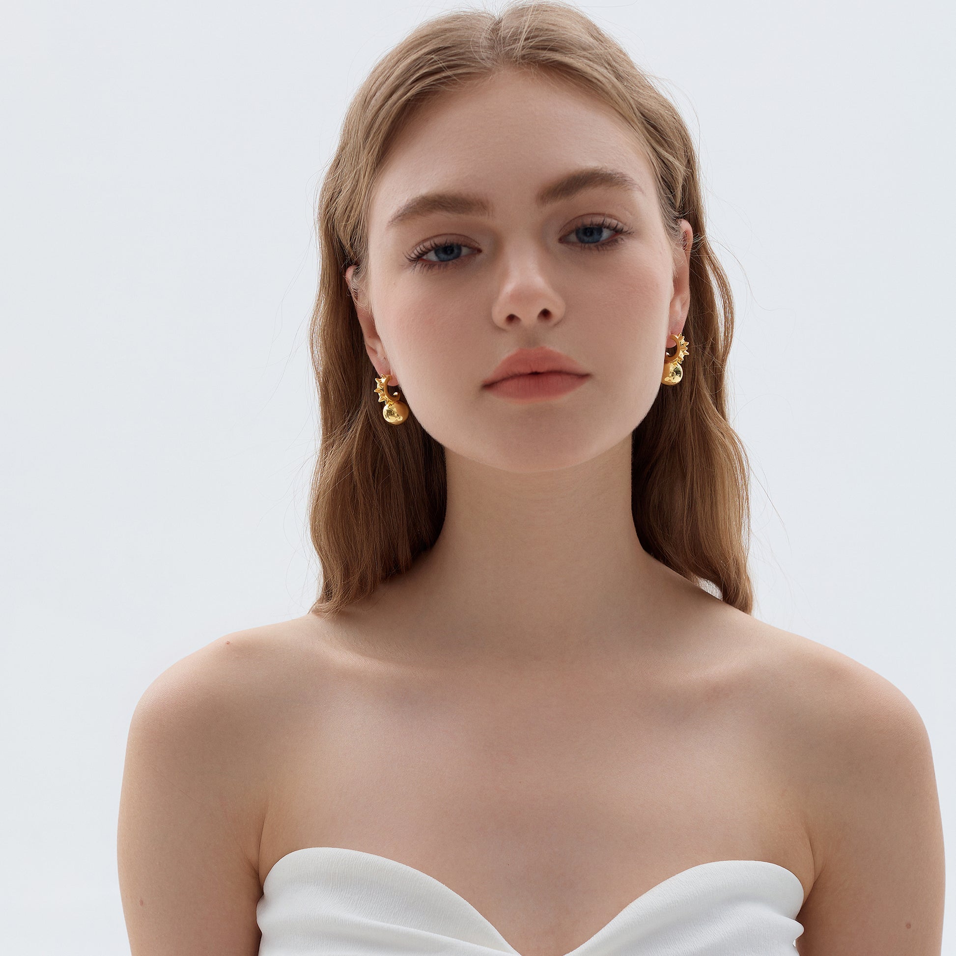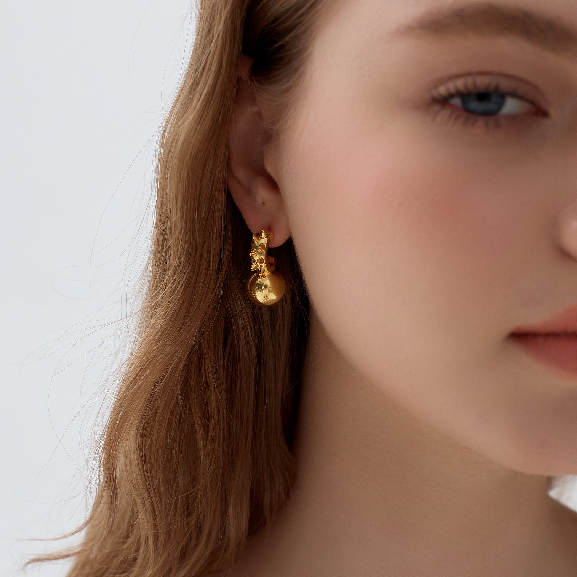 Fashion Jewelry Chunky Electroforming Hollow Light Large Round Ball 999 Sterling Silver Statement Stud Earrings
