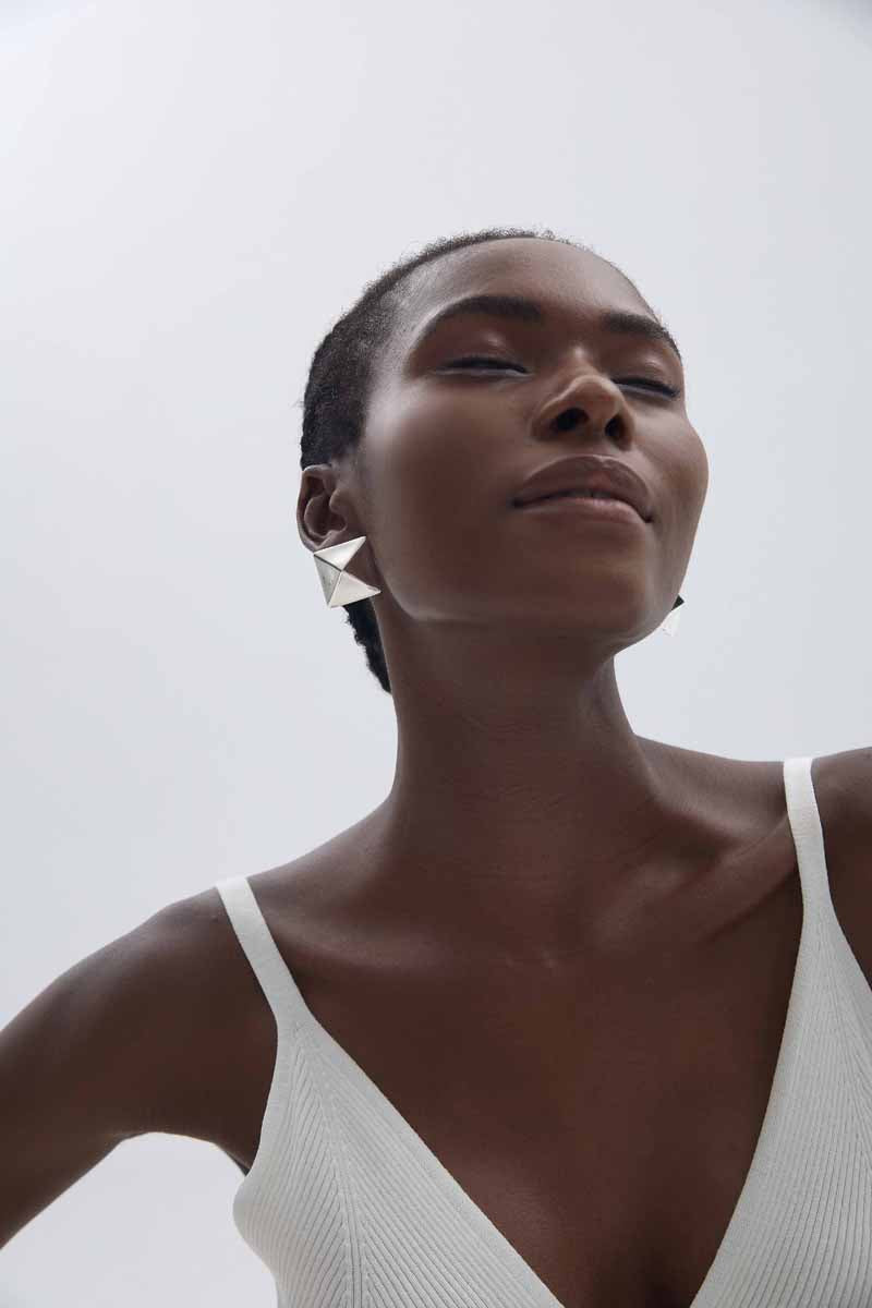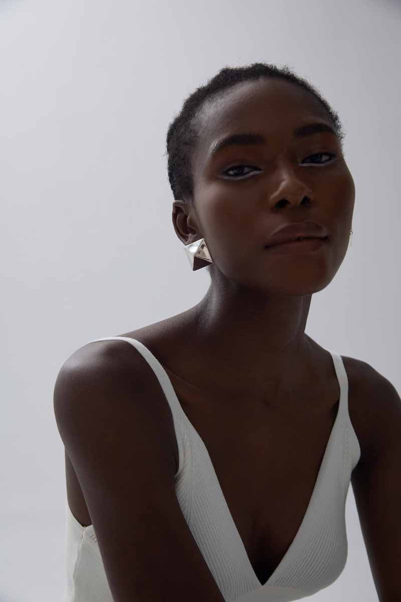 Fine Jewelry Electroforming Women Hypoallergenic S999 Sterling Silver Geometric Gold Silver Tone Origami Pyramid Earrings