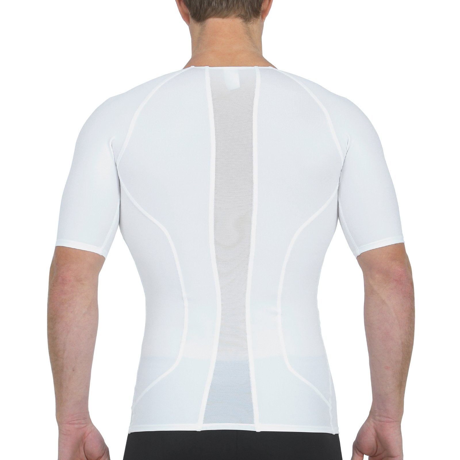 I.S.Pro USA by Insta Slim offers our new Mesh Panel Compression Shirt to our collection. Our compression fabric blend of 72% nylon and 28% spandex provides all over compression throughout the fabric. The featured mesh panels located in key regions along your spine and collarbone provides ample airflow and breathability. Along with the targeted panels, the garment features flatlock seams to reduce chafing for better comfort. The magic is in the fabric! The blended fabric throughout all of our garments, provides all day comfort along with additional support (depending on style of garment) due to our 4 way stretch.