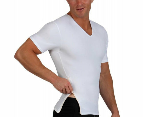 Insta Slim The Original Proven, V-neck T-shirt is a unique short sleeve compression T-shirt with side zipper for easy on and off ,will make you look up to 5” slimmer and pounds lighter Instantly.