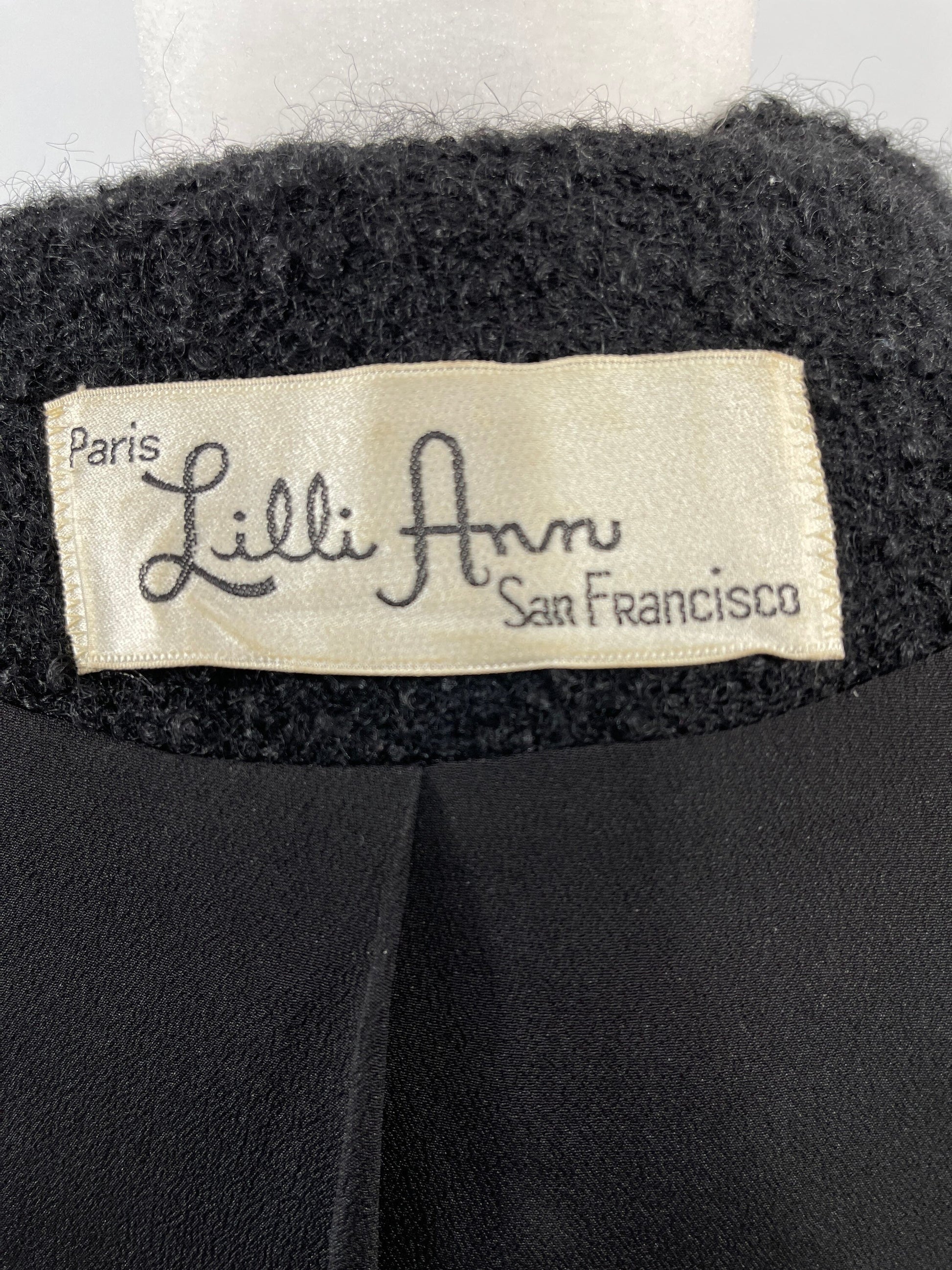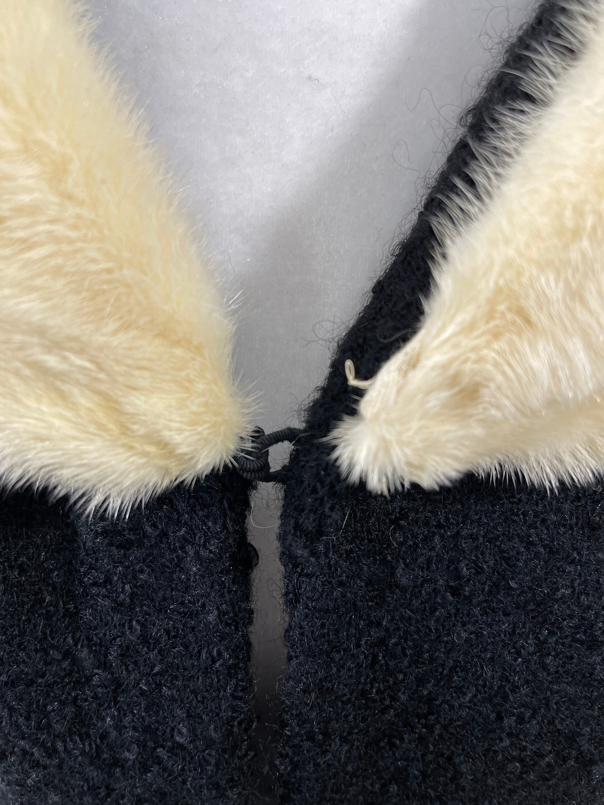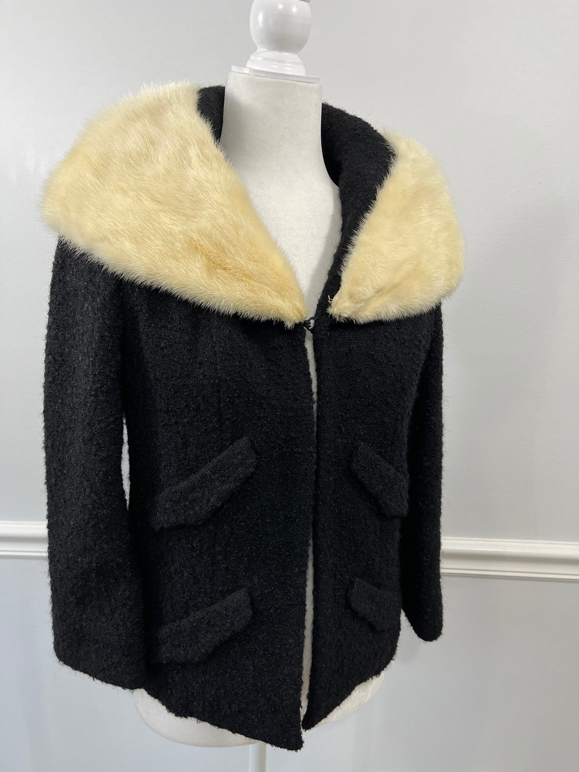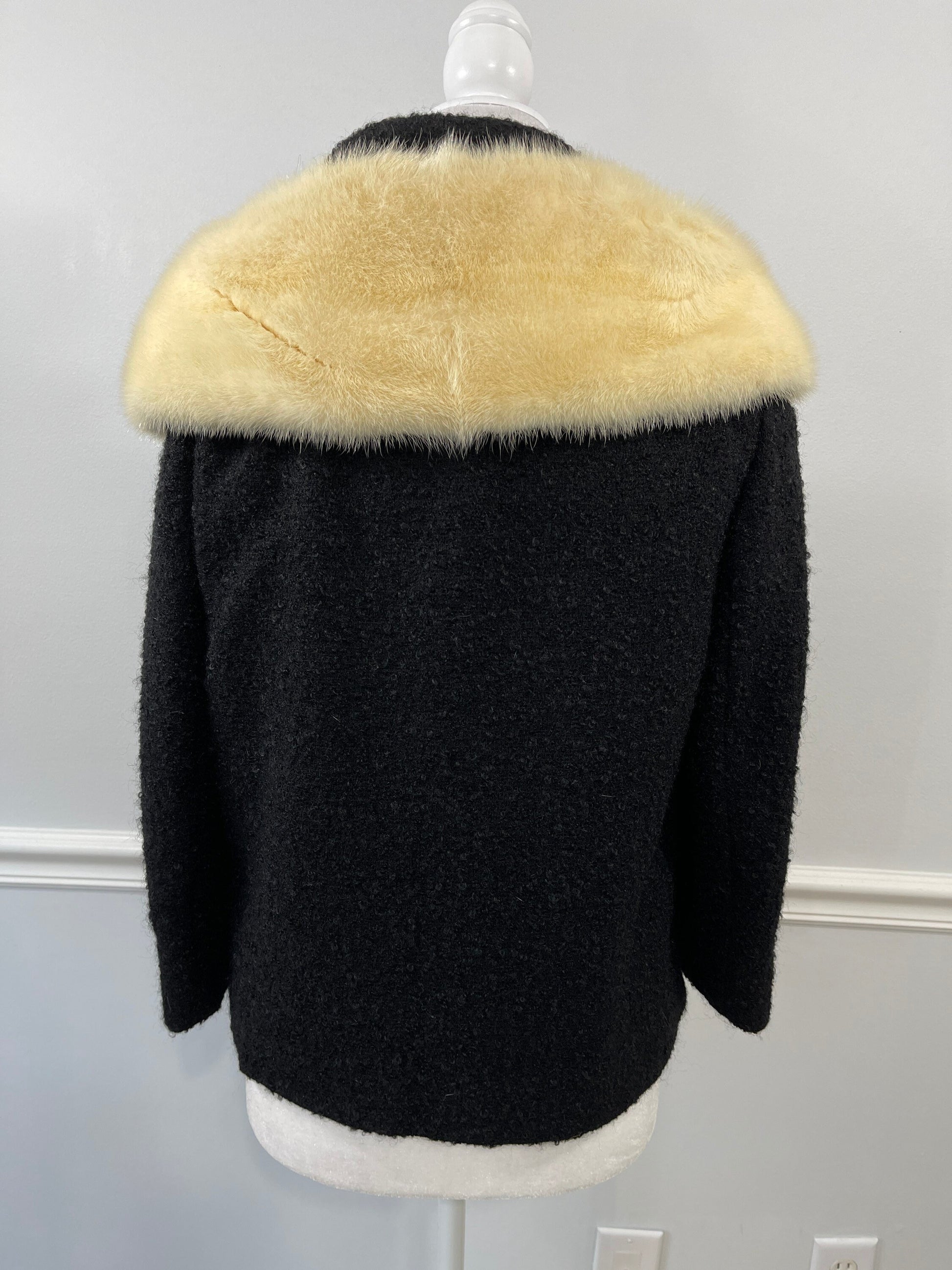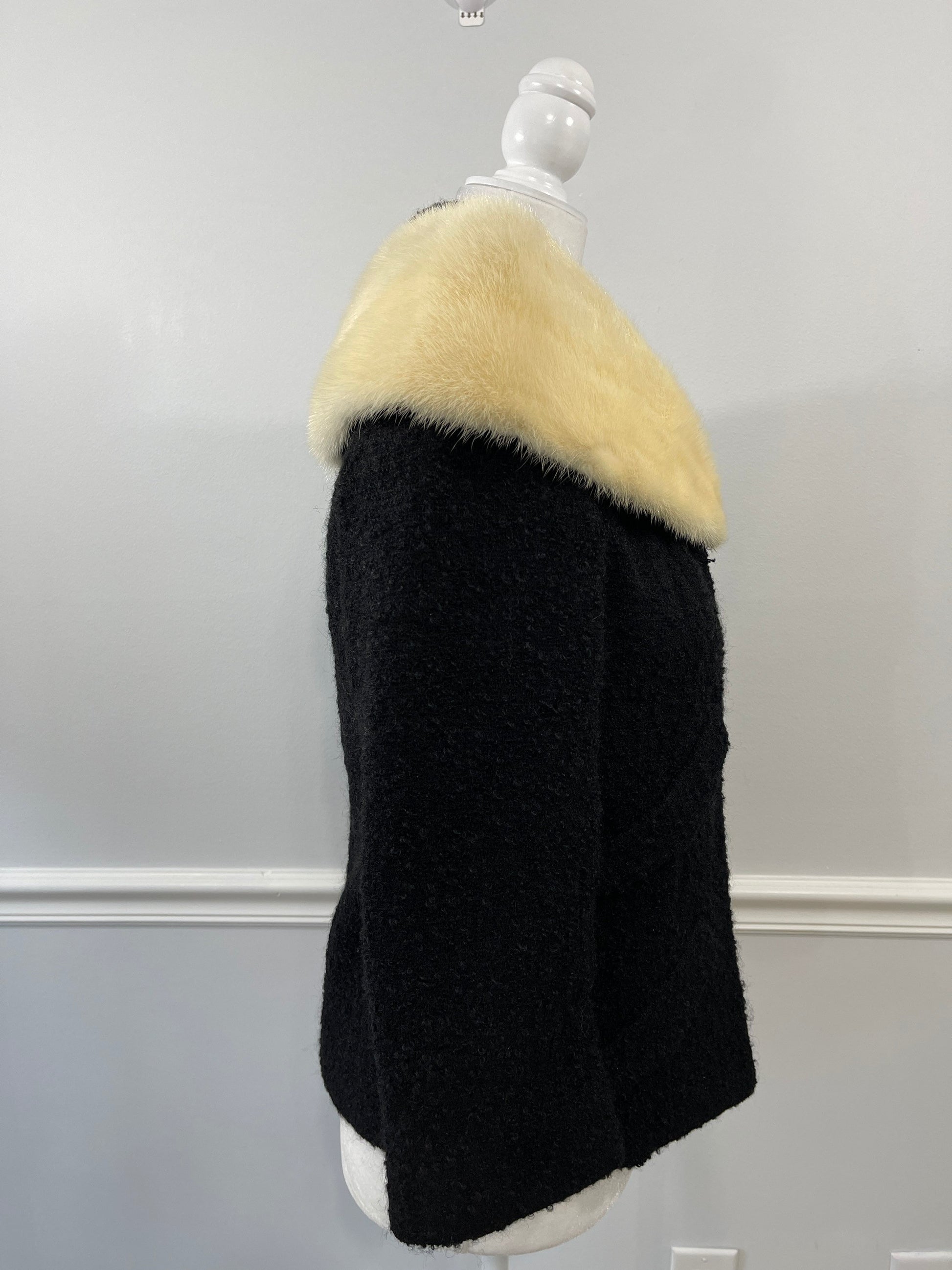 Lilli Ann Blonde Mink Collar Nubby Black Wool Jacket sz XS/S