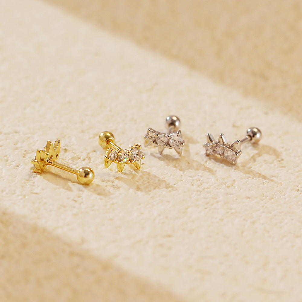 Office Round CZ Crown 925 Sterling Silver Screw Stud Earrings