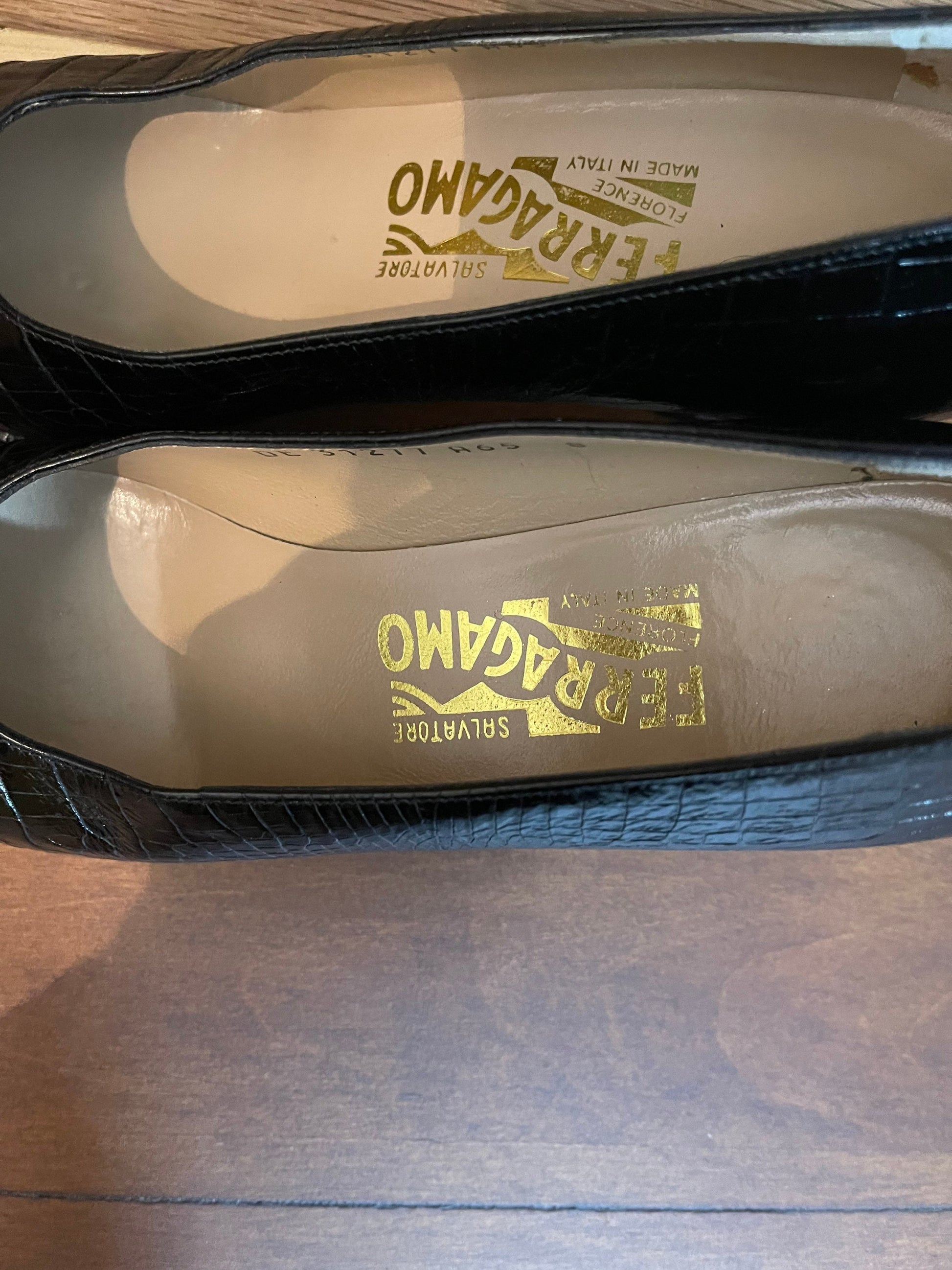Salvatore Ferragamo Black Crocodile Print Pumps Sz 8AAA