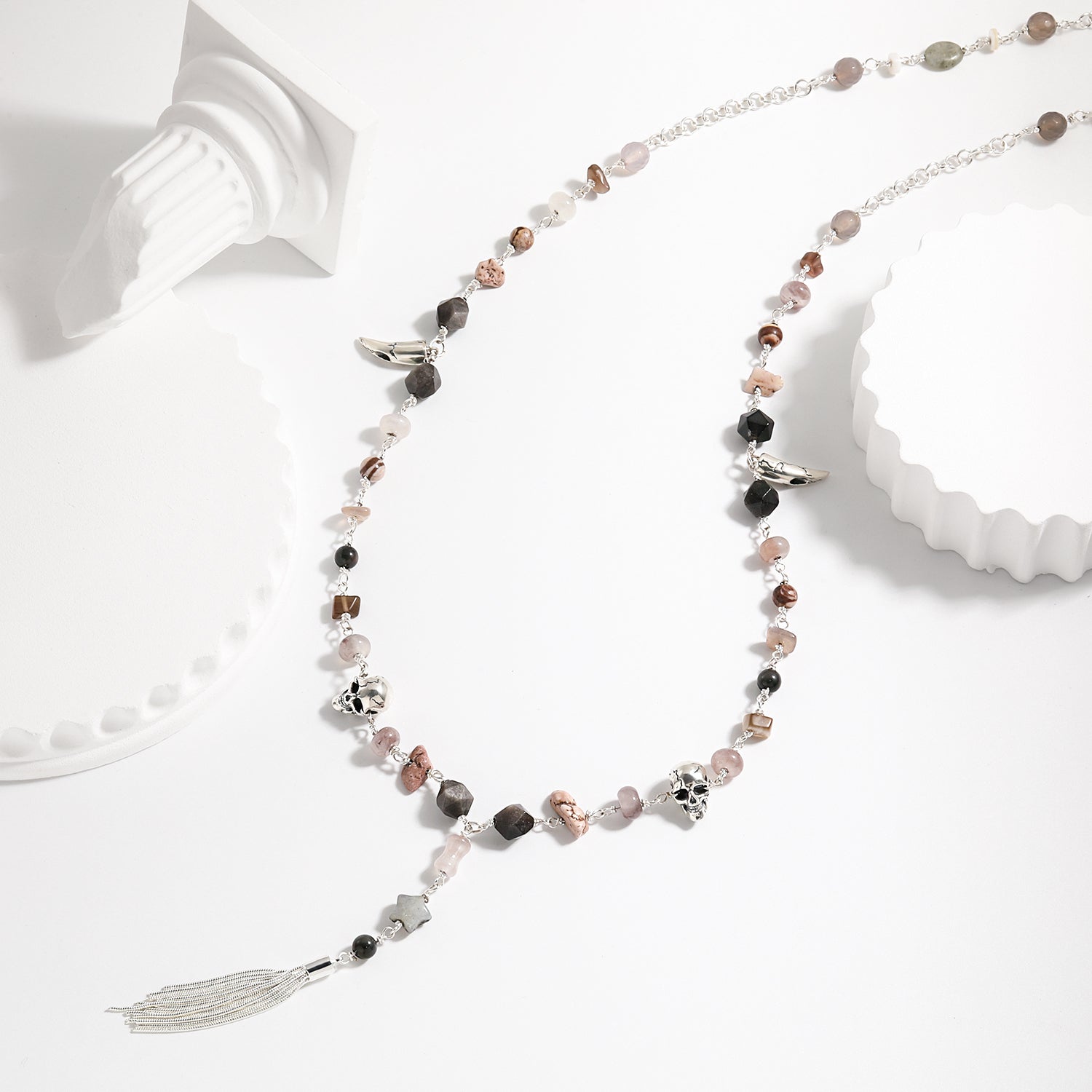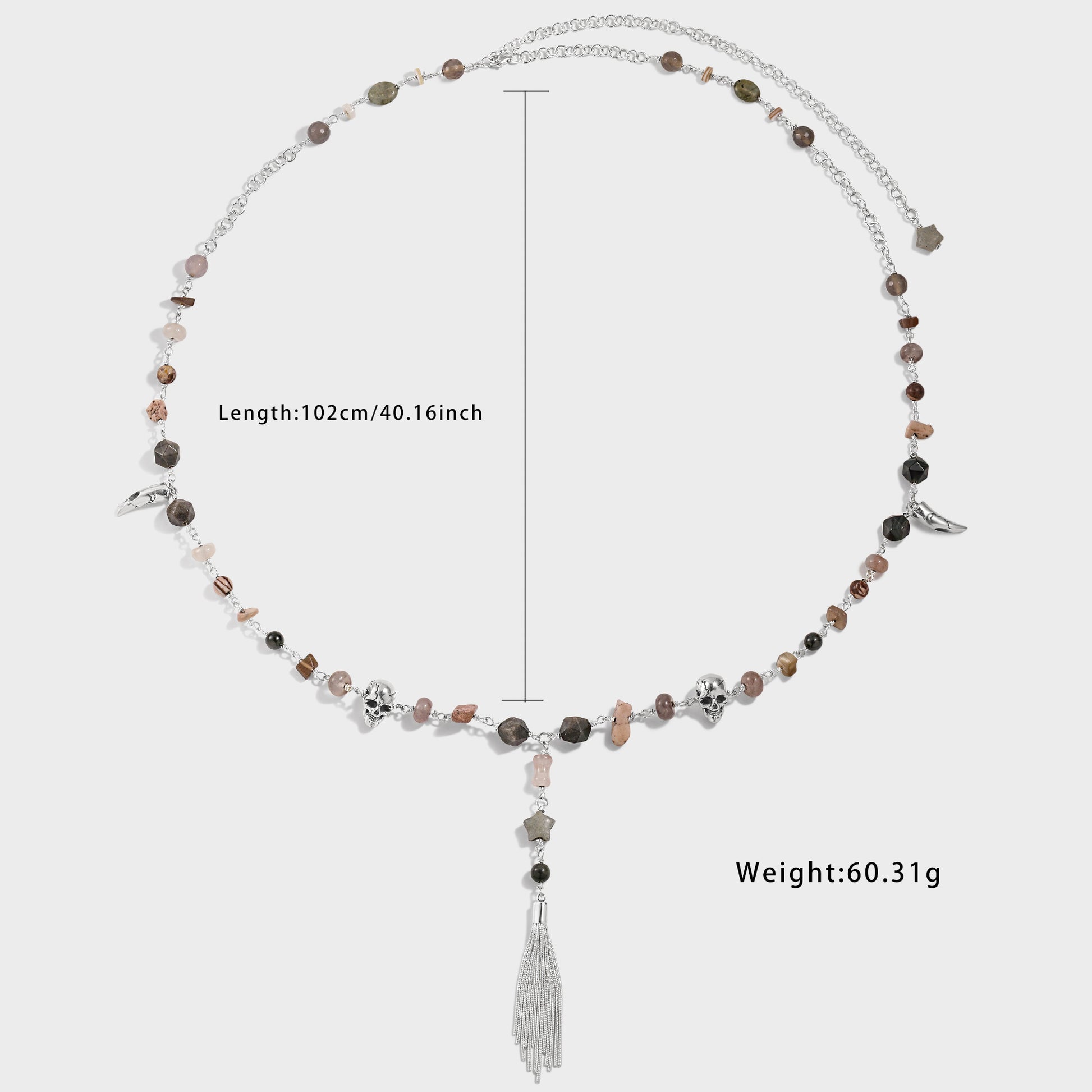 Statement Metal Jewelry Edgy 925 Pure Silver Fashion Skull Head Irregular Stone Tassels Waist Chain Metal