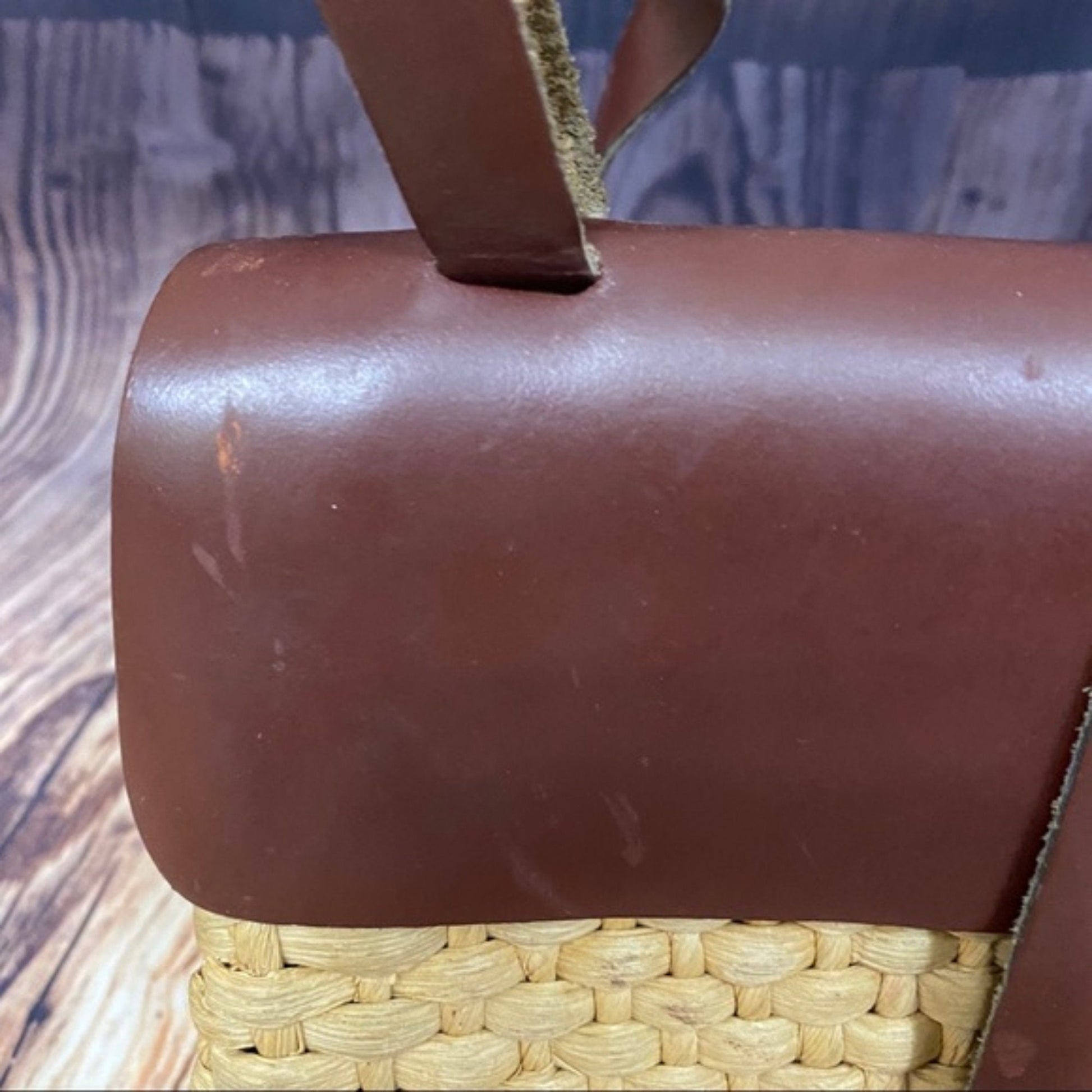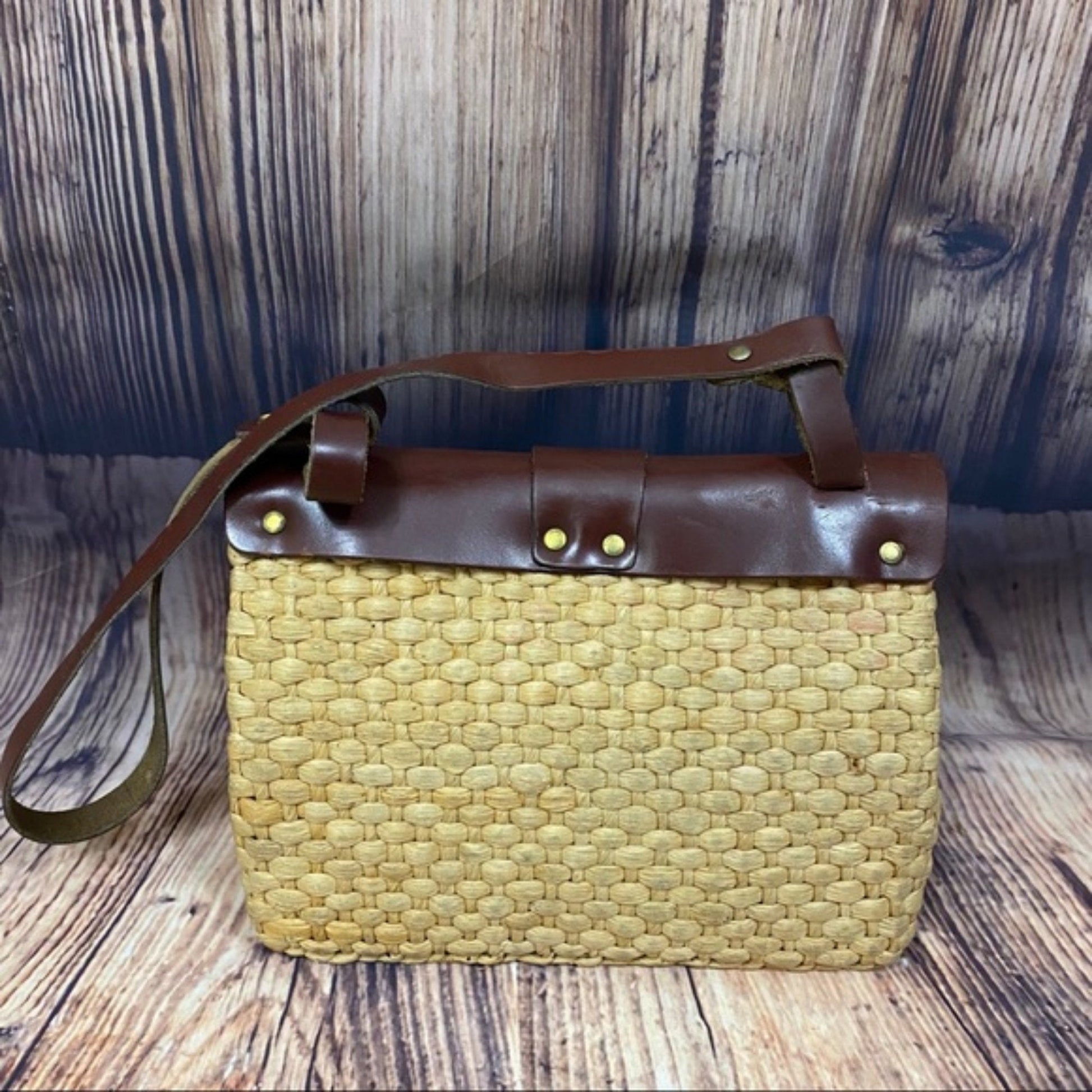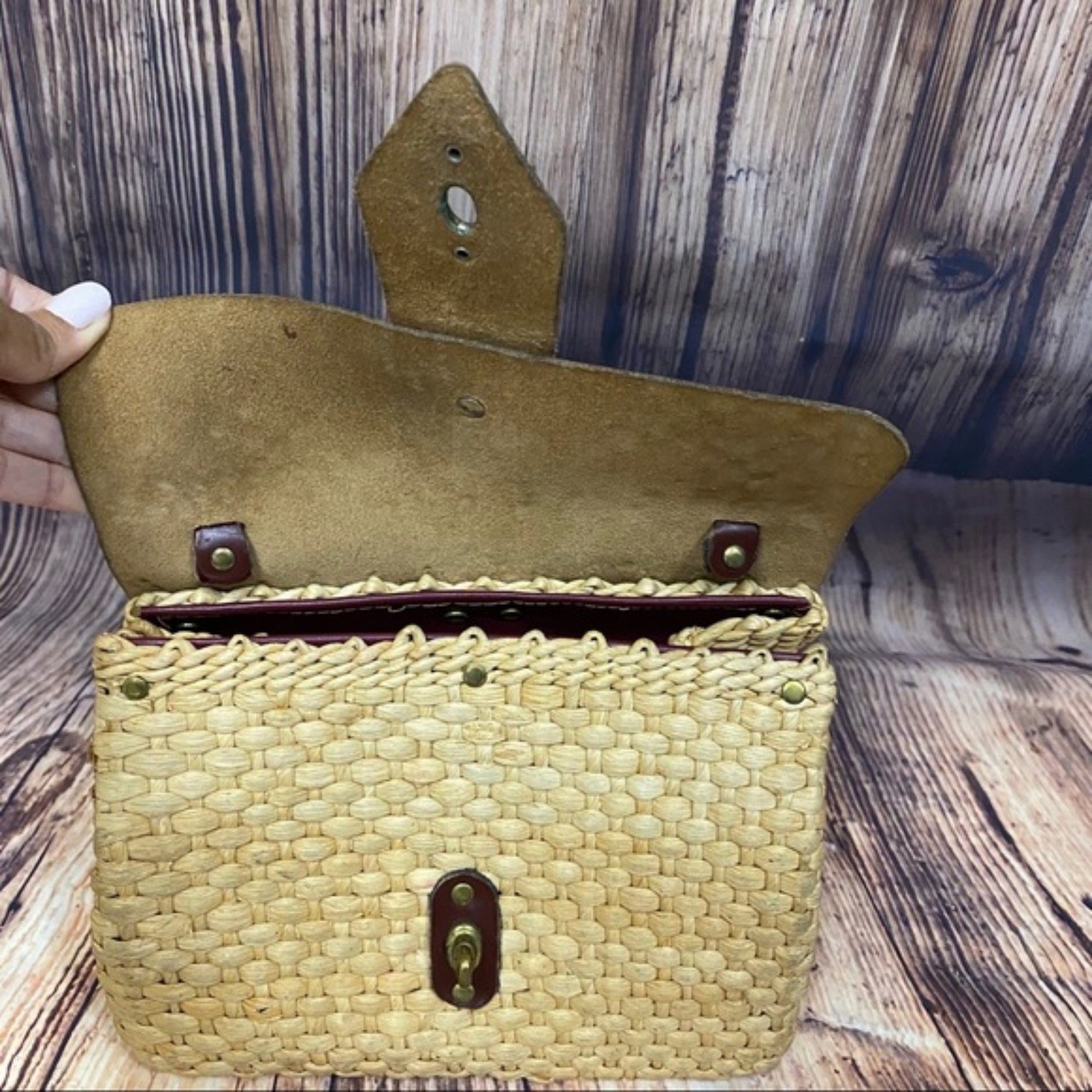 Vtg 50’s Raffia Bag with Burgundy Leather Trim
