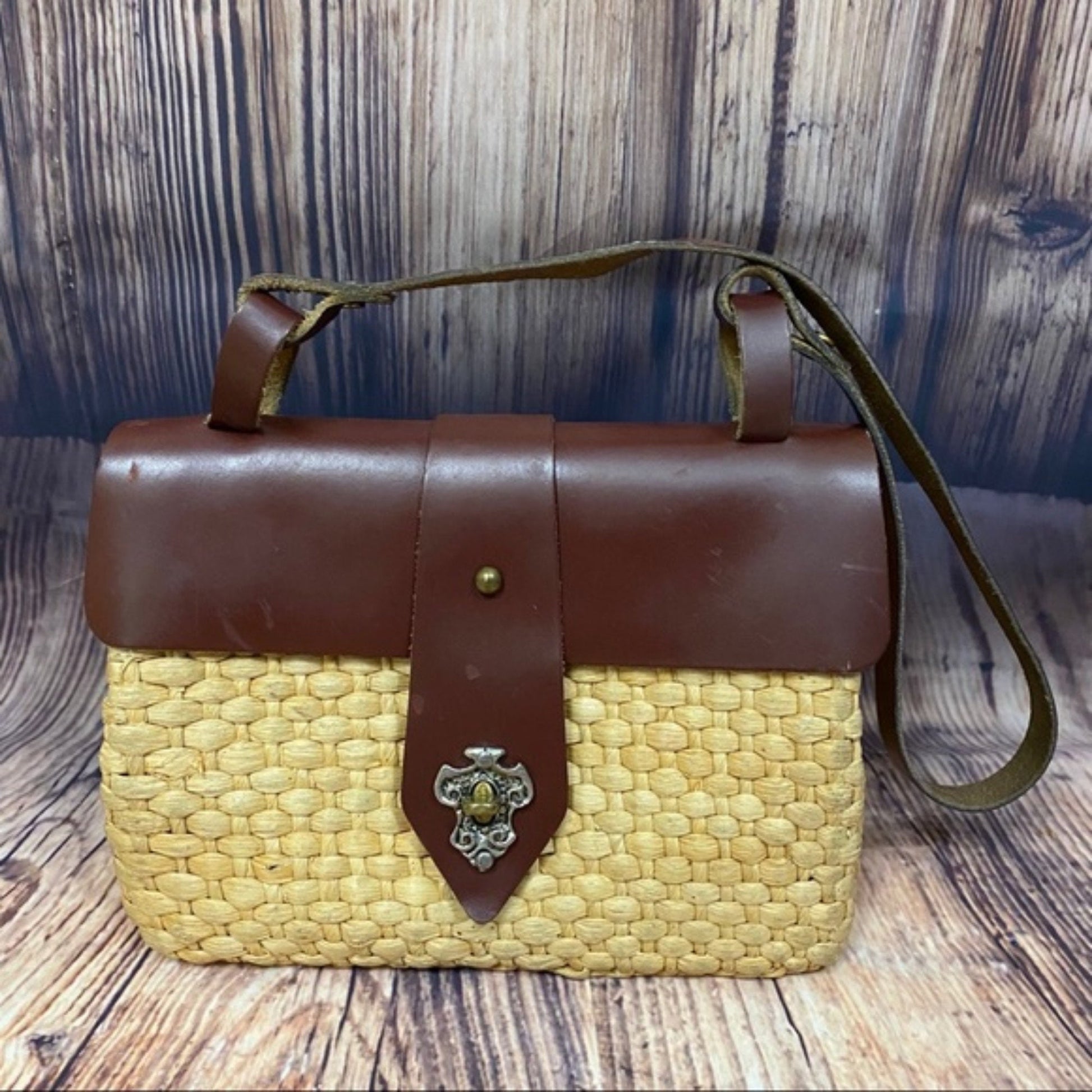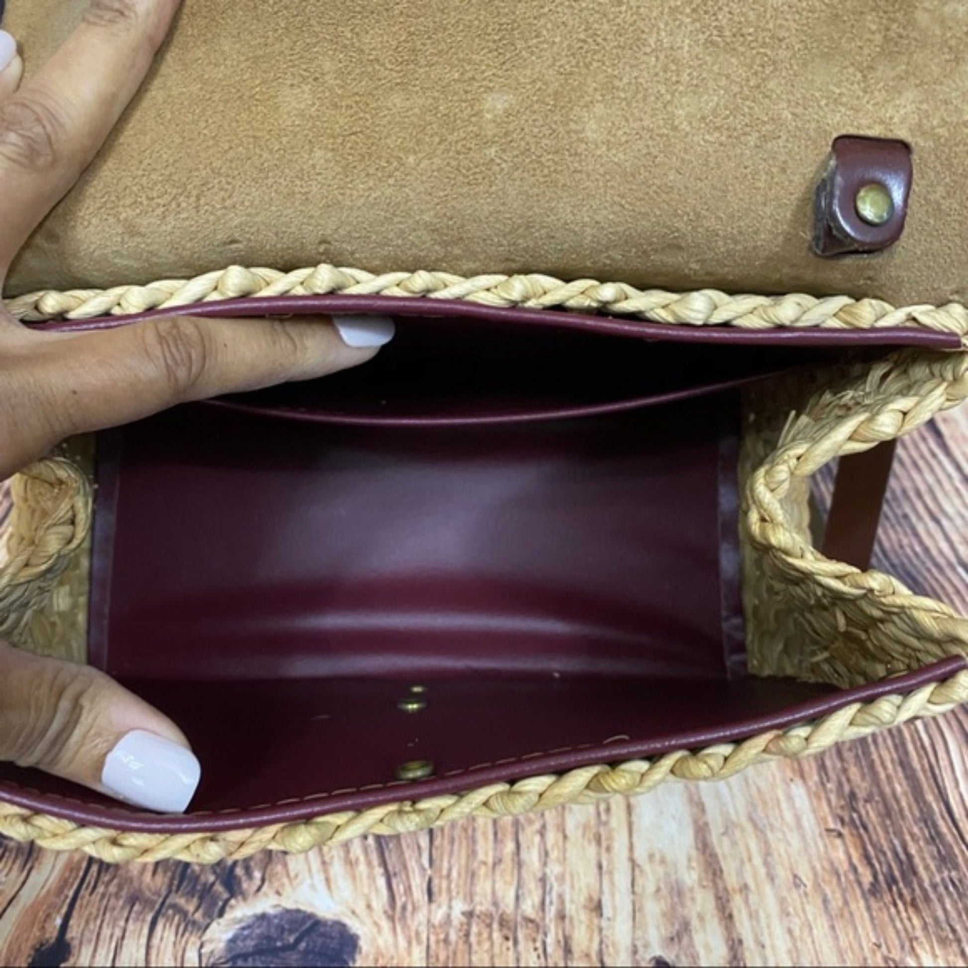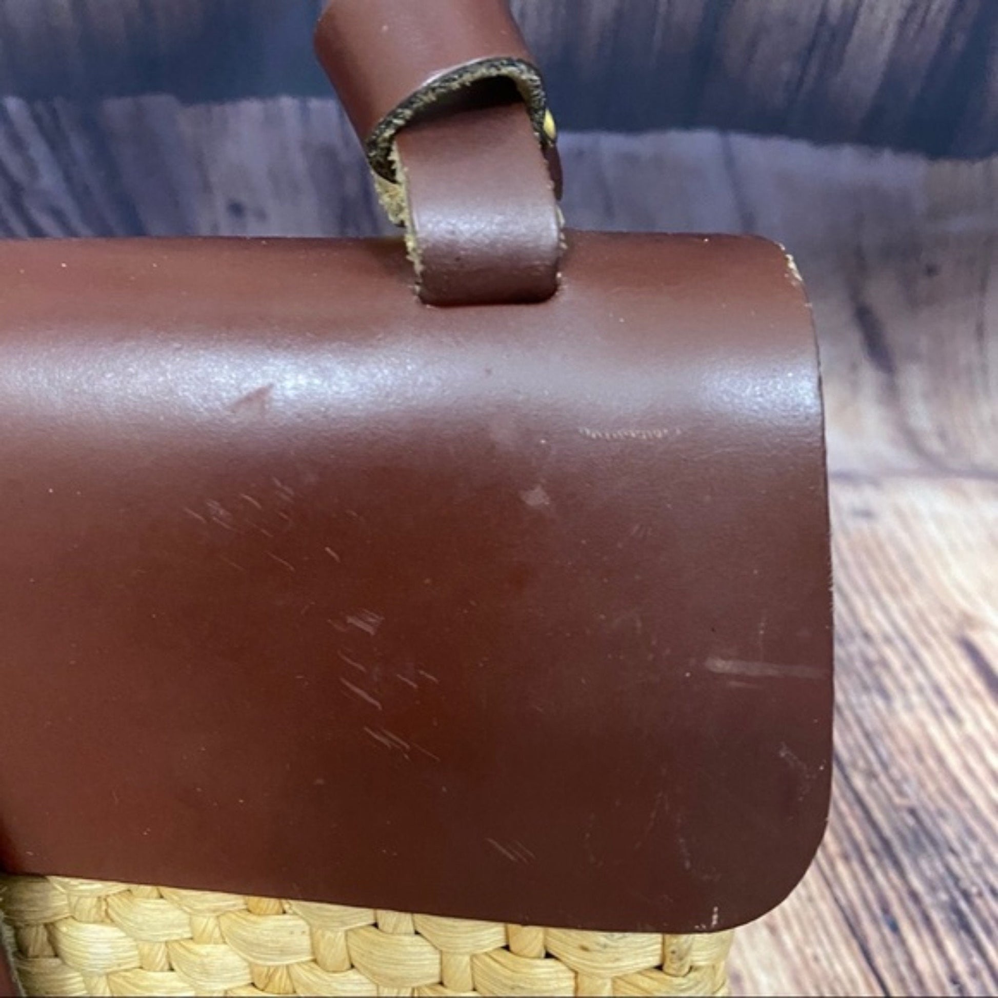 Vtg 50’s Raffia Bag with Burgundy Leather Trim