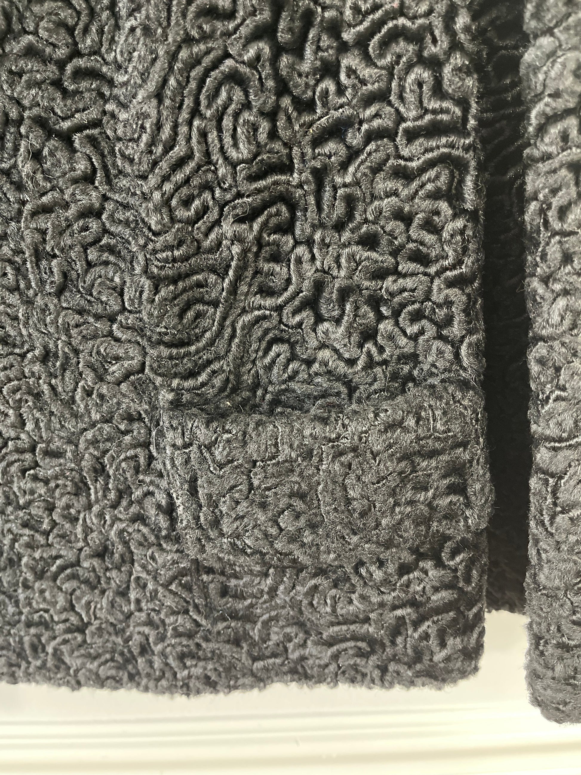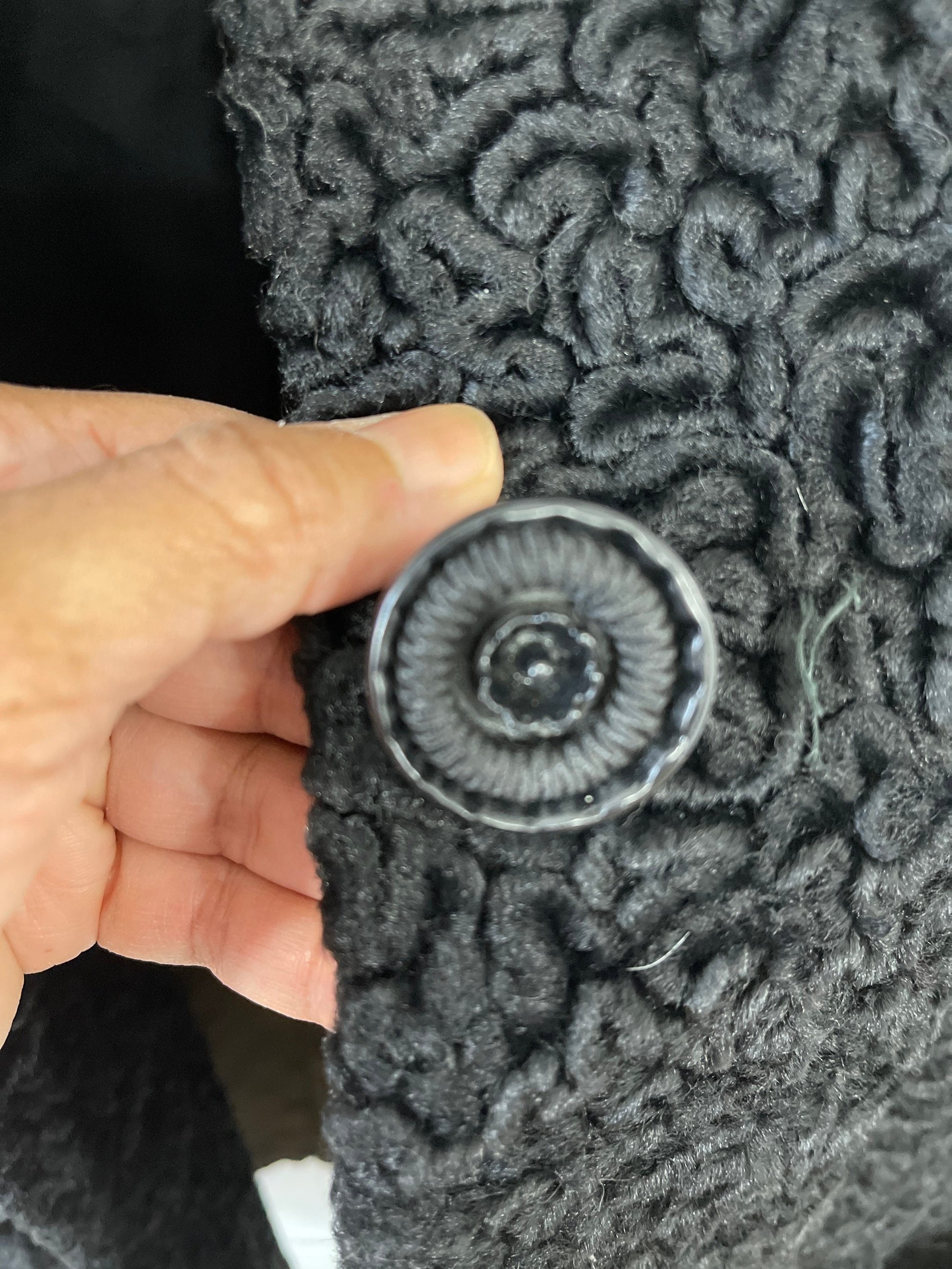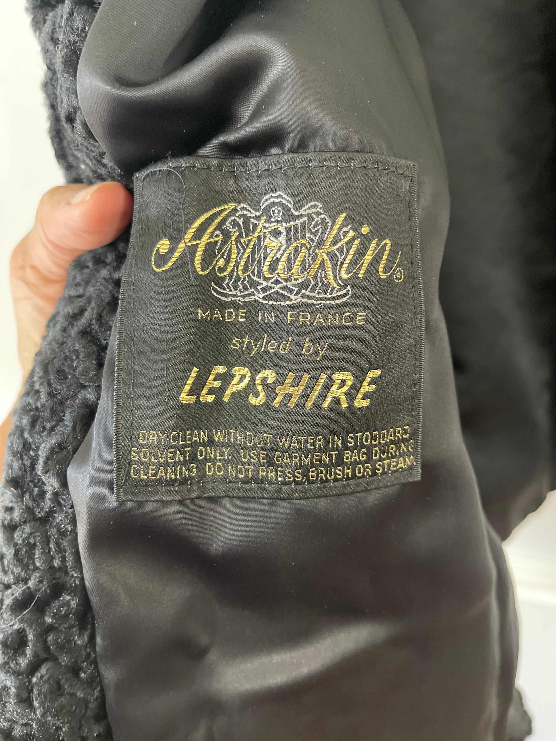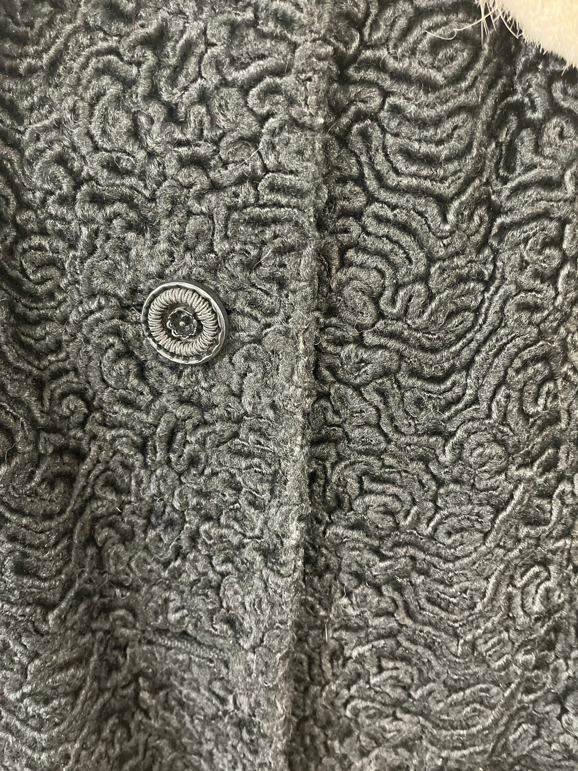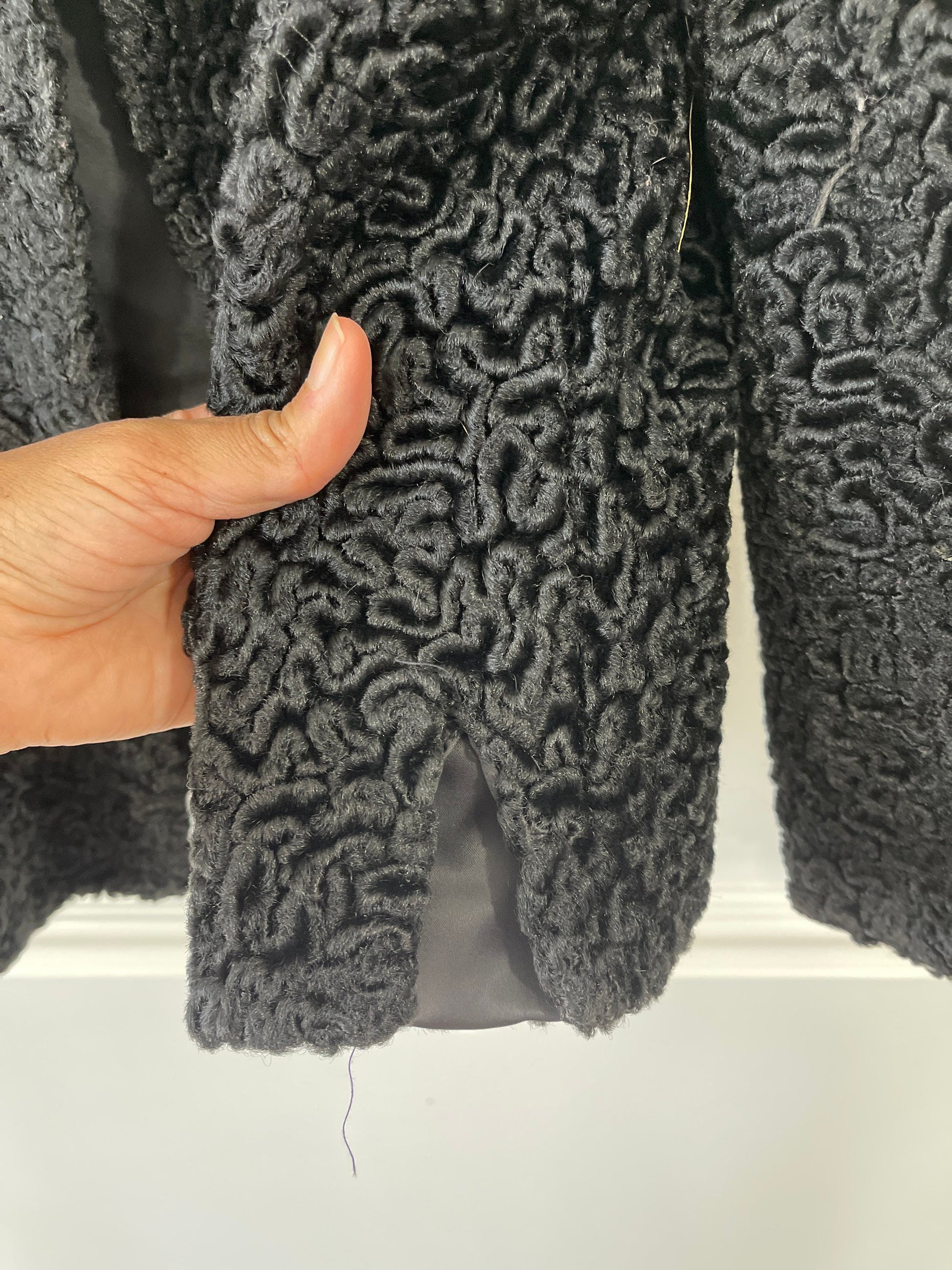 Vtg 60s Astrakin Black Persian Lamb Mink Fur Collar Coat Sz S/M Bell Sleeve