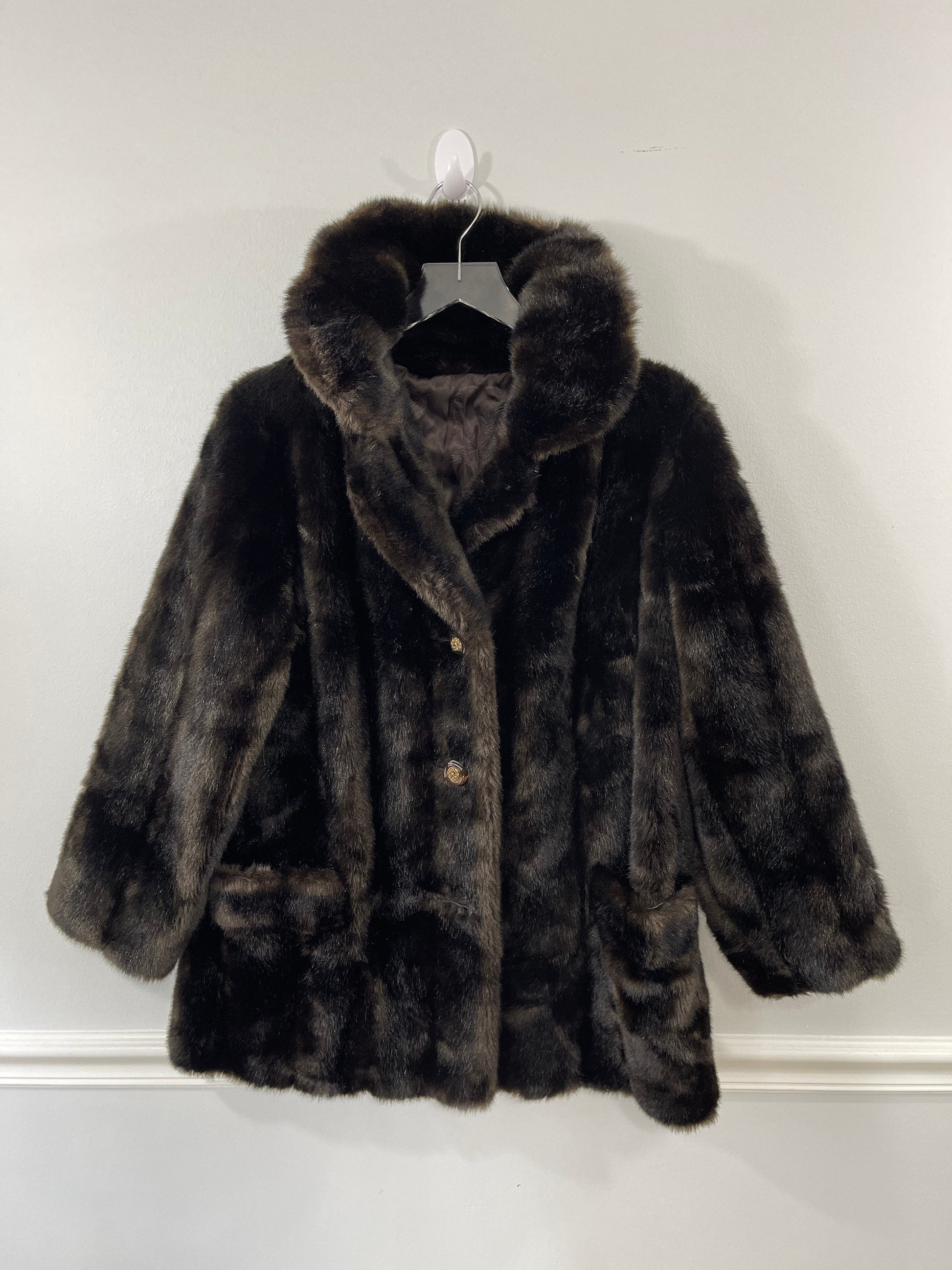 Vtg 80’s Faux Fur Dark Chocolate Brown Mink Coat Sz L/XL