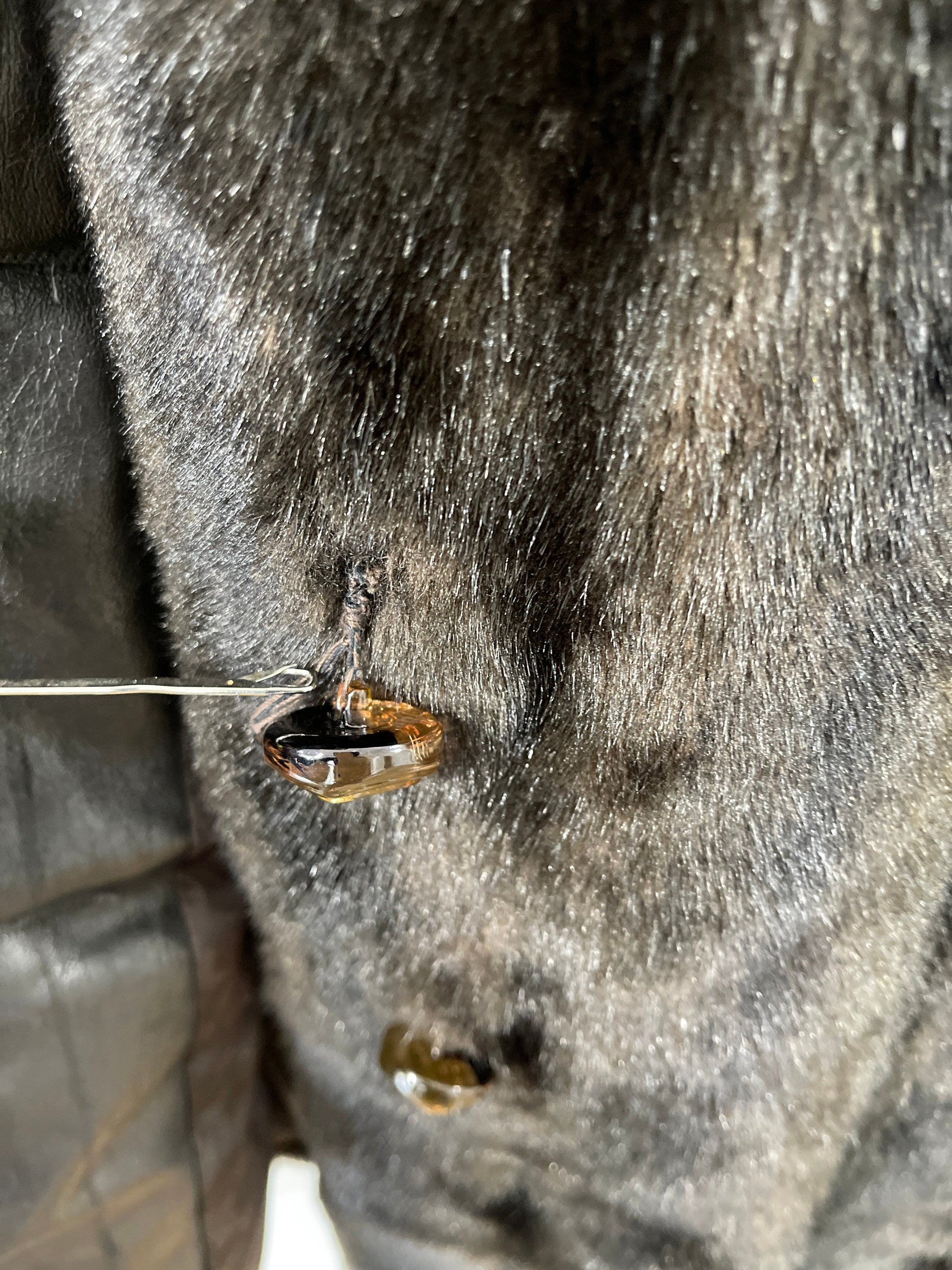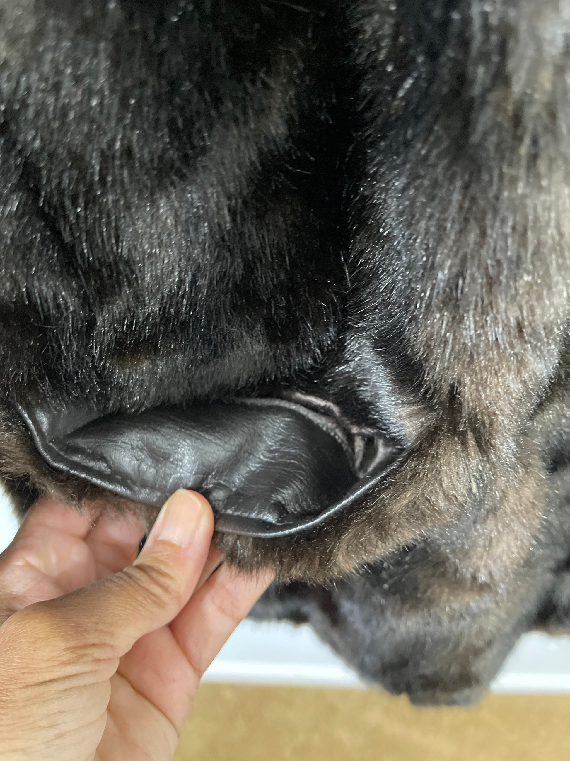 Coat has leather lined pockets and inside button panels. Very luxurious faux mink made in USA, see union label. Coat is in excellent condition with exception of loose buttons. No size tag but measurements are consistent with sz L/XL.