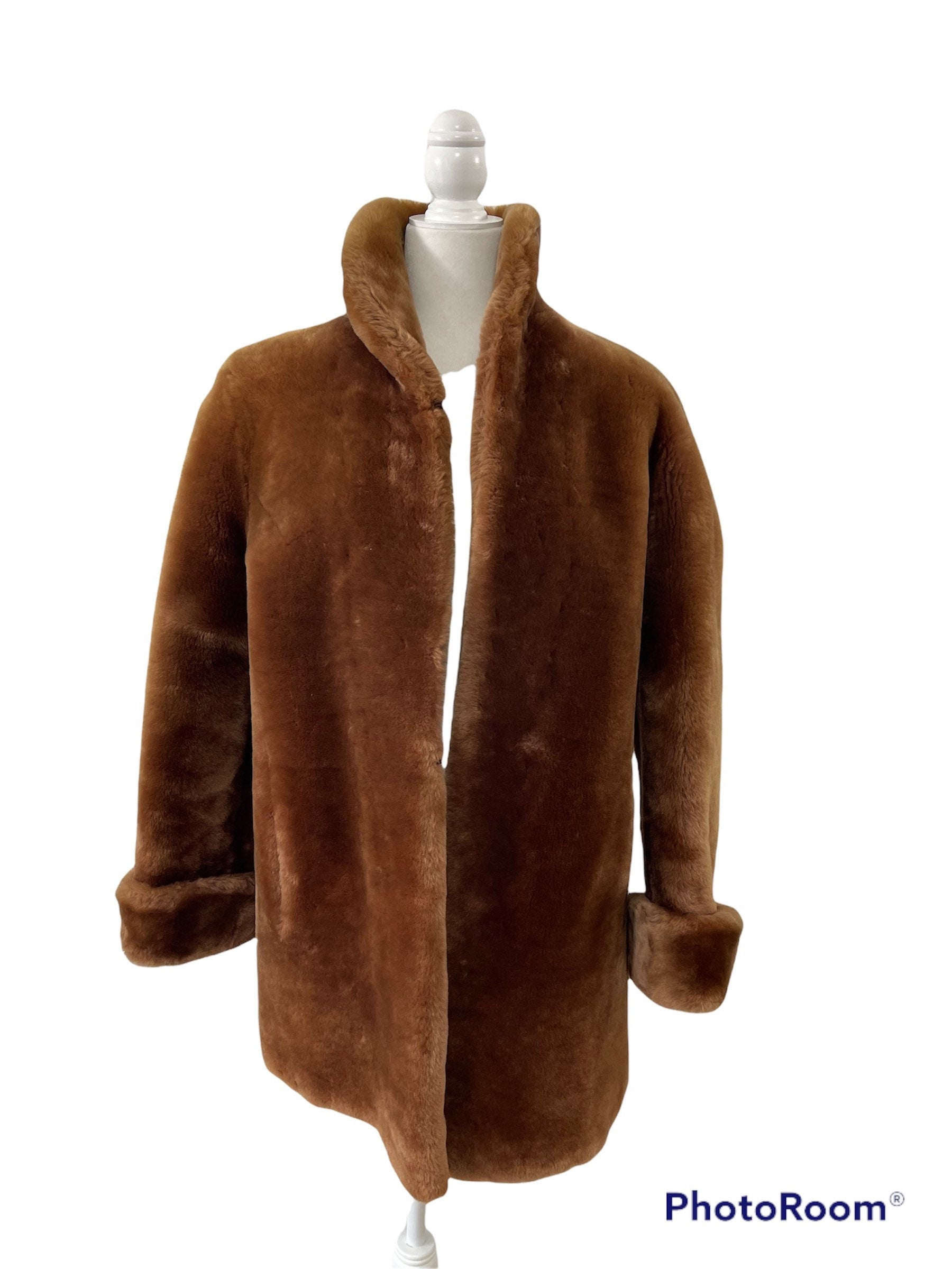 Vtg 80’s L Frank Co Washington Mano Schwartz Fur Salon Brown Faux Fur Teddy Coat sz L