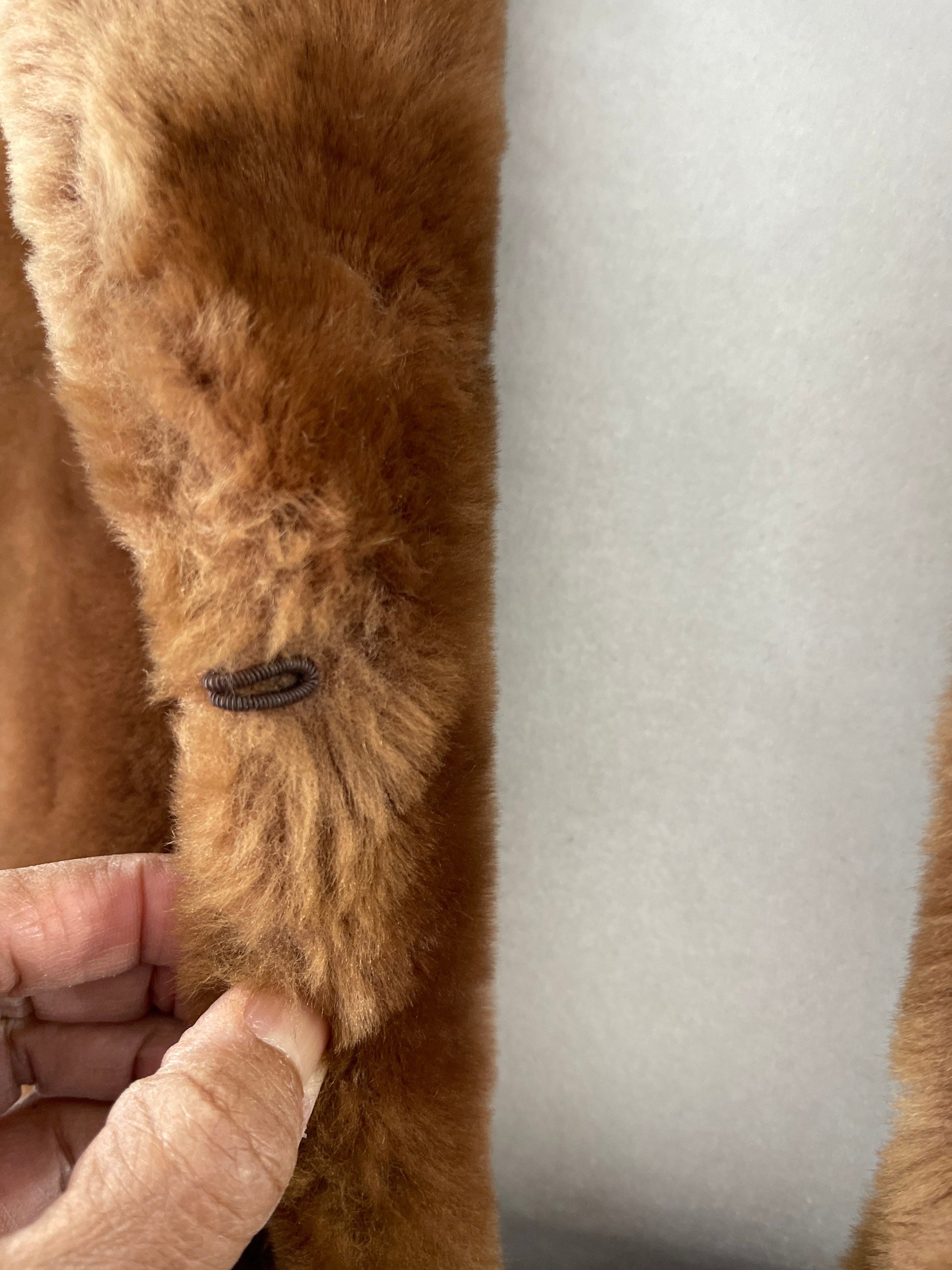 Coat is a rich milk chocolate brown with a very soft and luxurious pile. It has a not h collar and two slit pockets in front. Cuffed sleeves