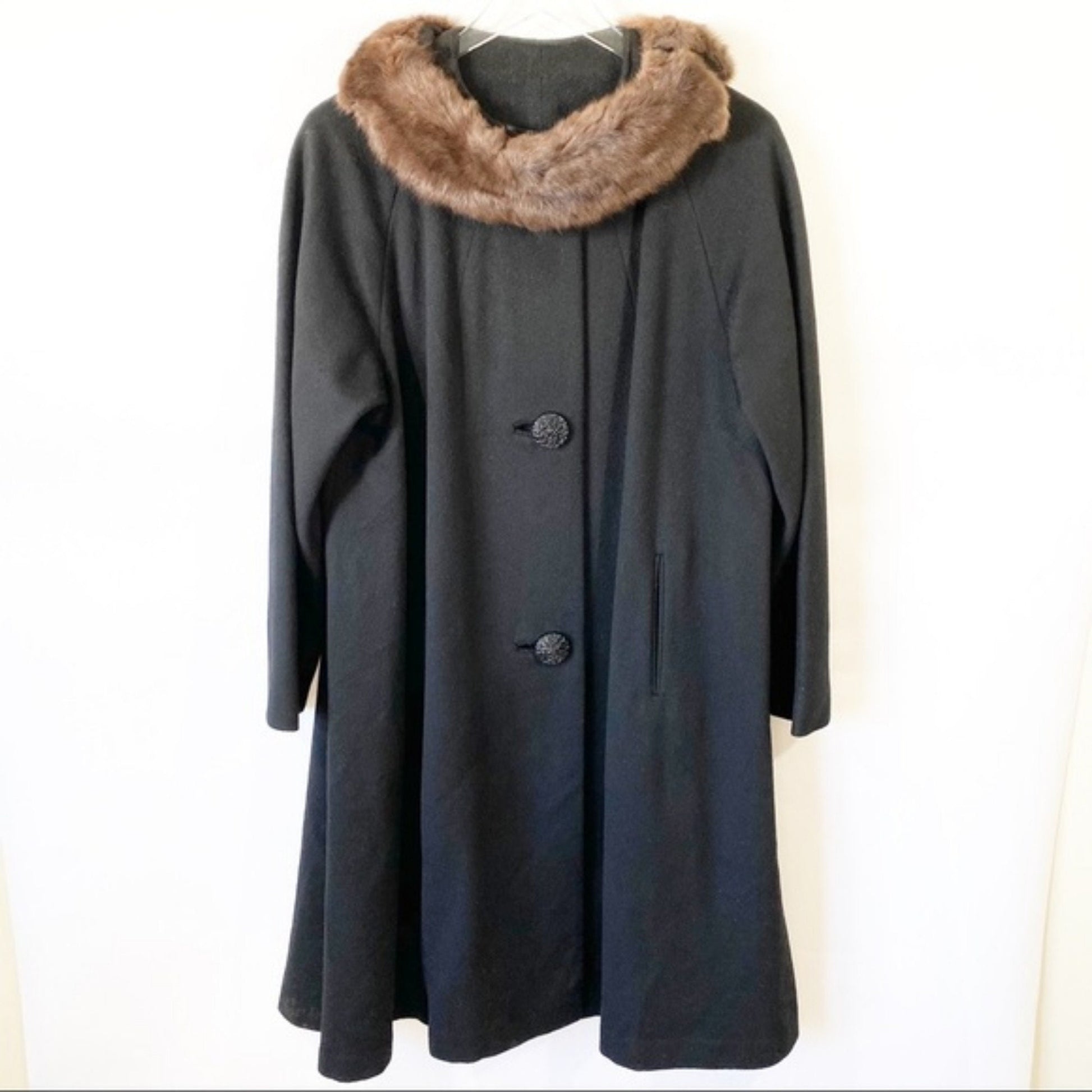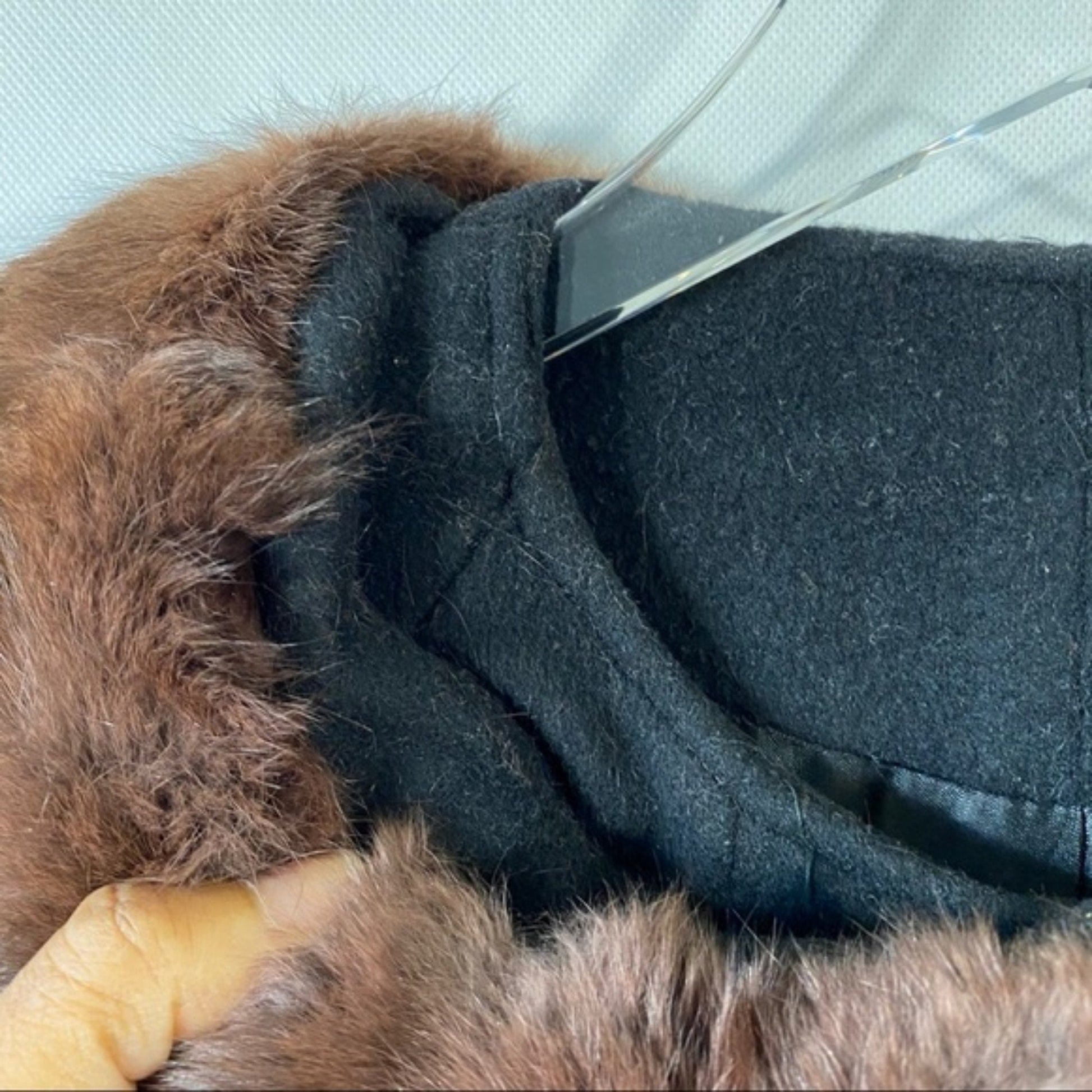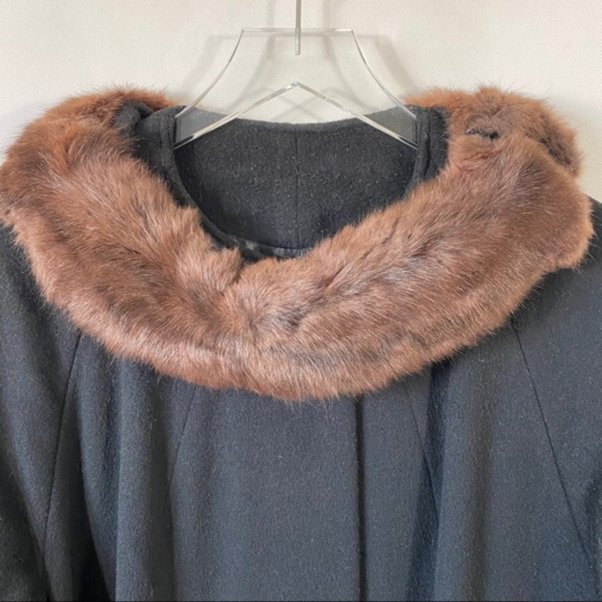Vtg Black Wool Coat with Mink Fur collar Sz L