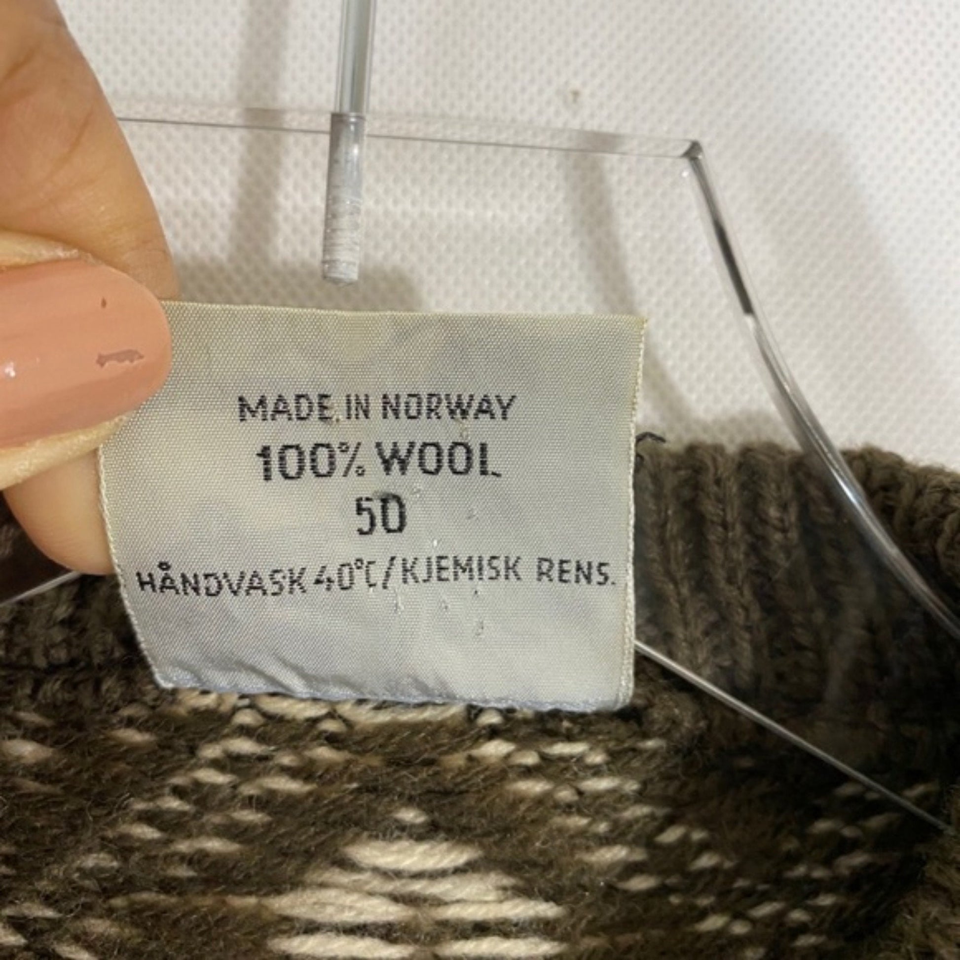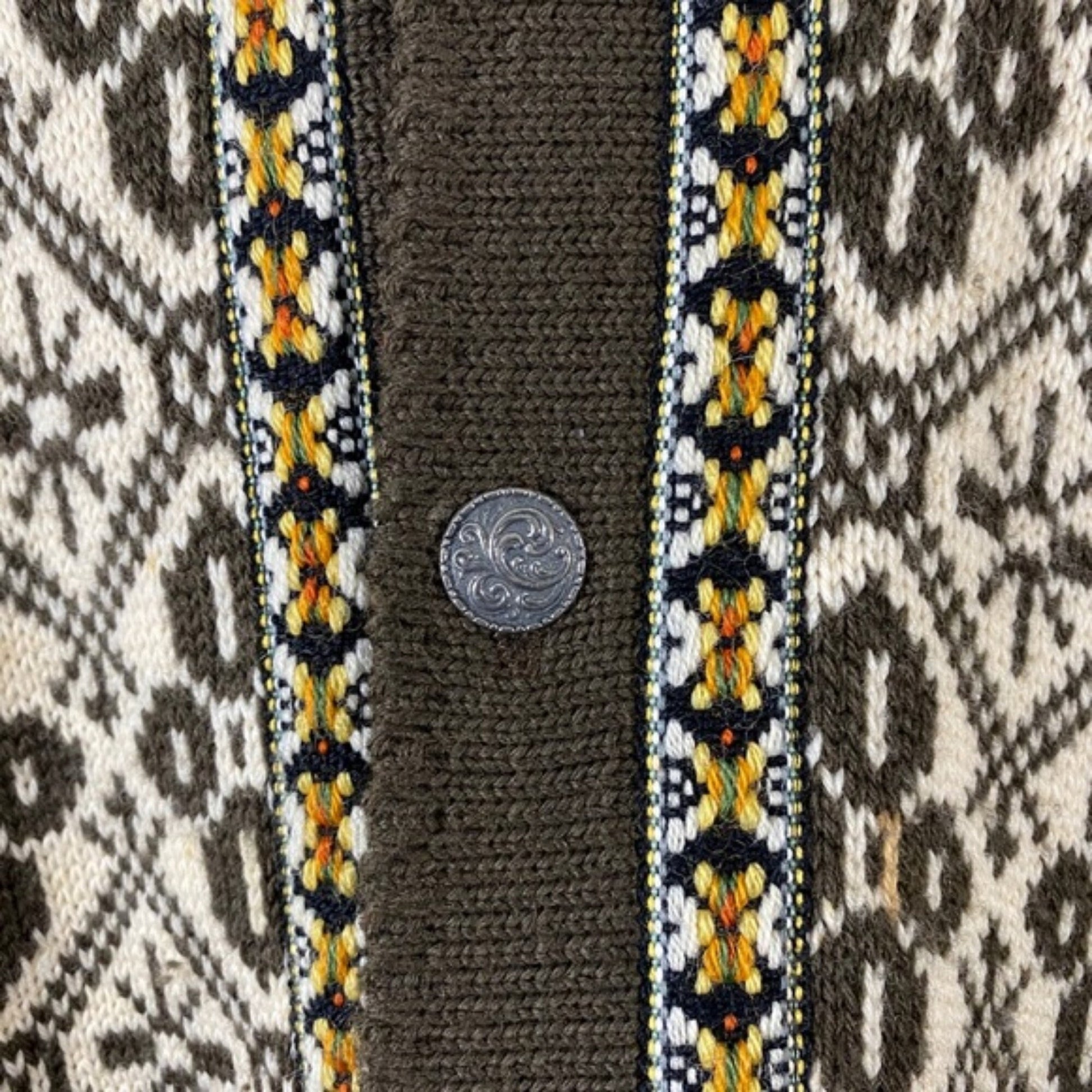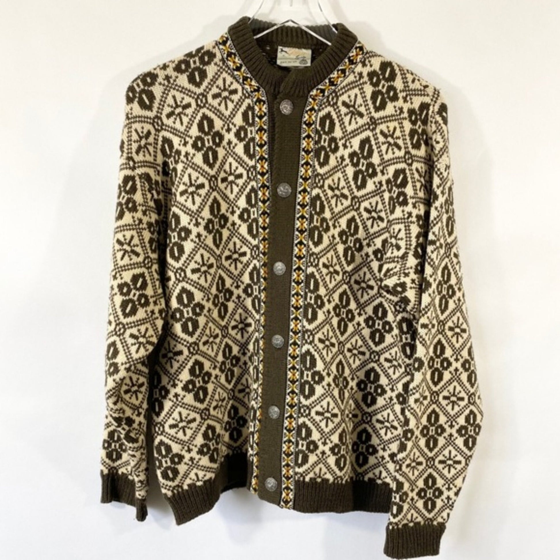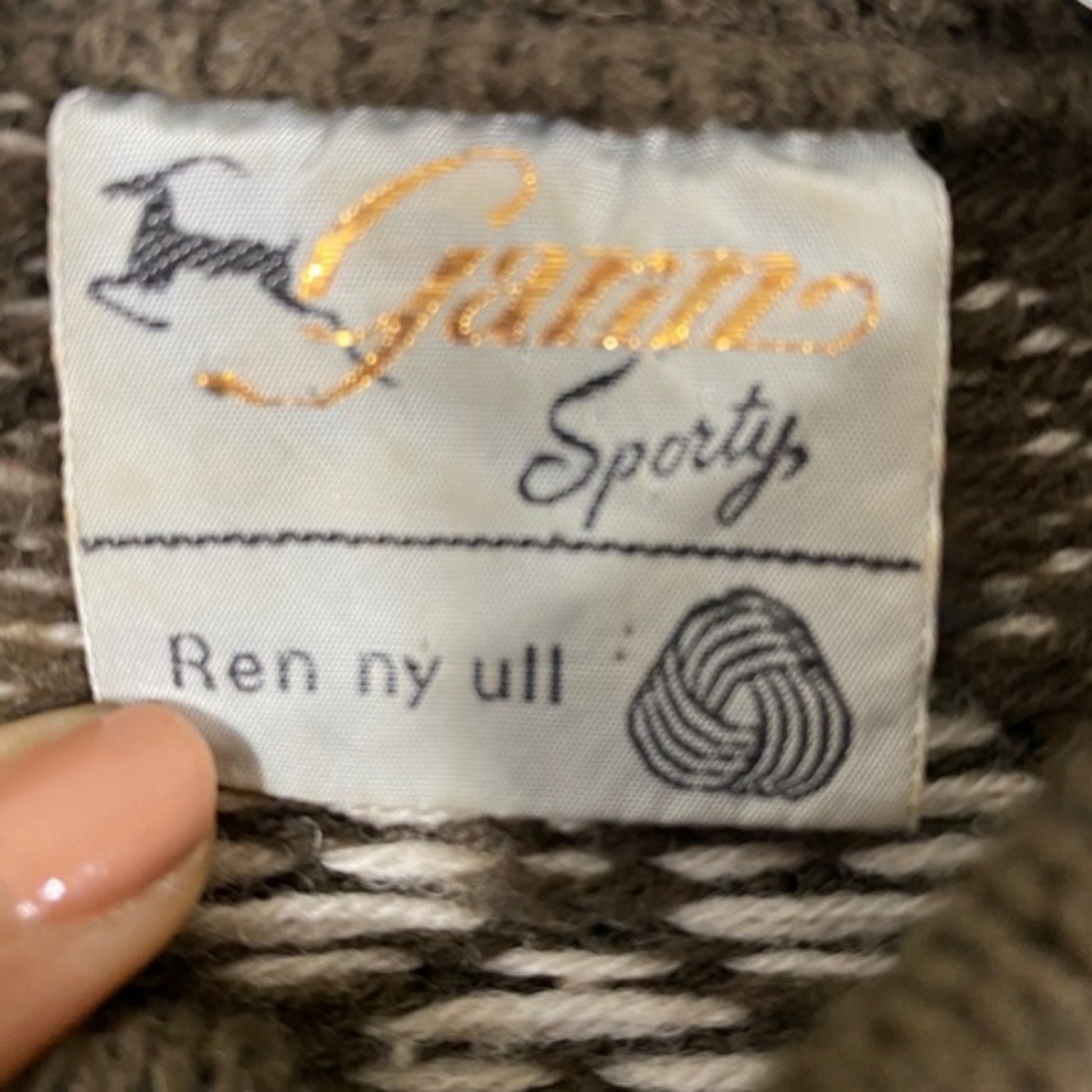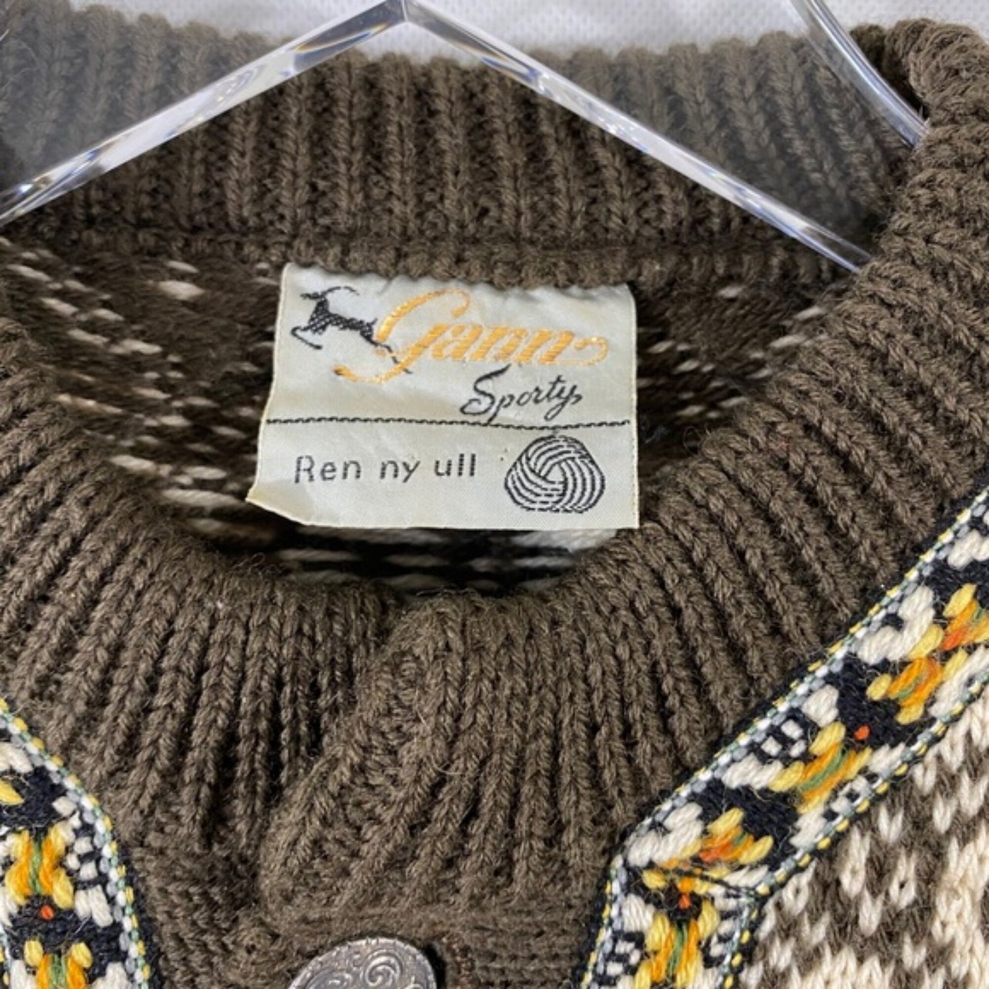 Vtg Gann Sporty Norwegian Wool Fair Isle Ski Cardigan Sweater sz M Brown and Beige made in Norway