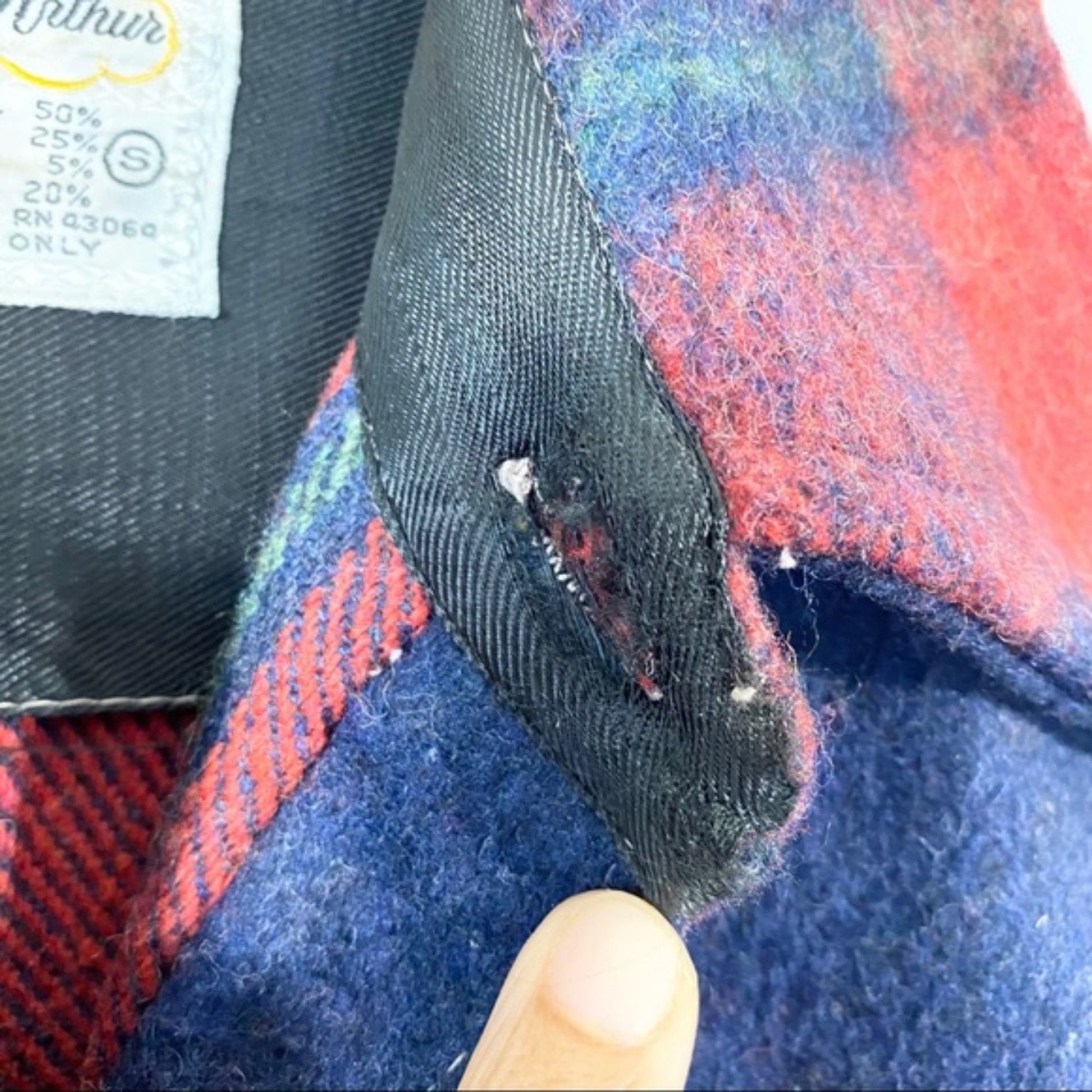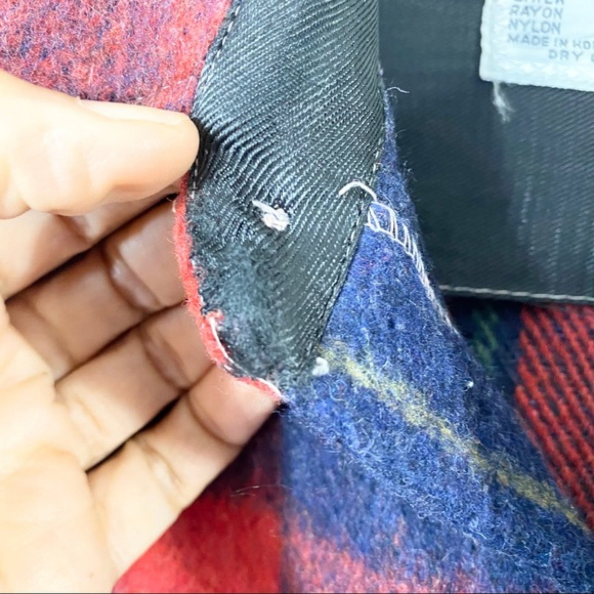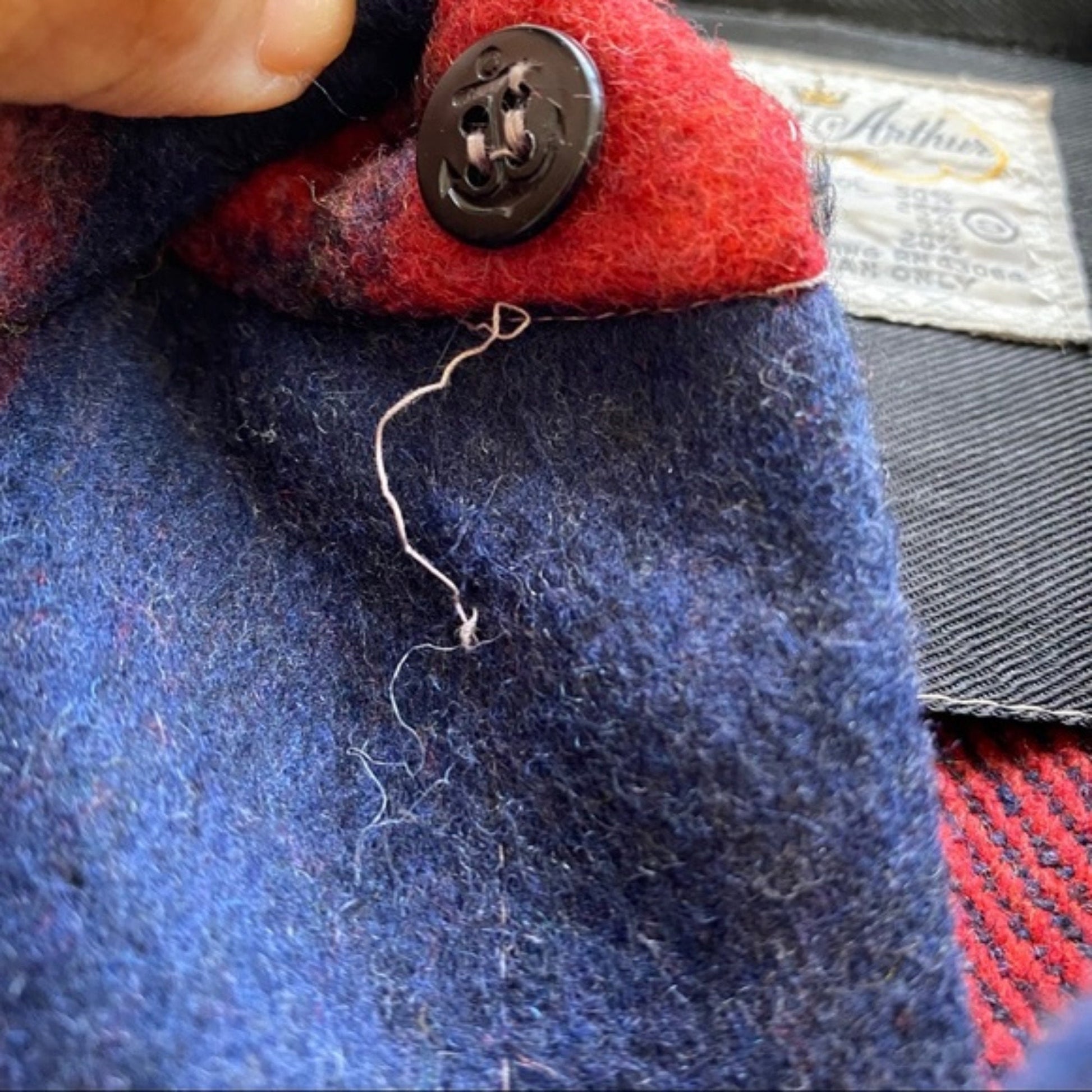Condition: shirt has a missing button, flaw on the inside of collar and thread, see all photos