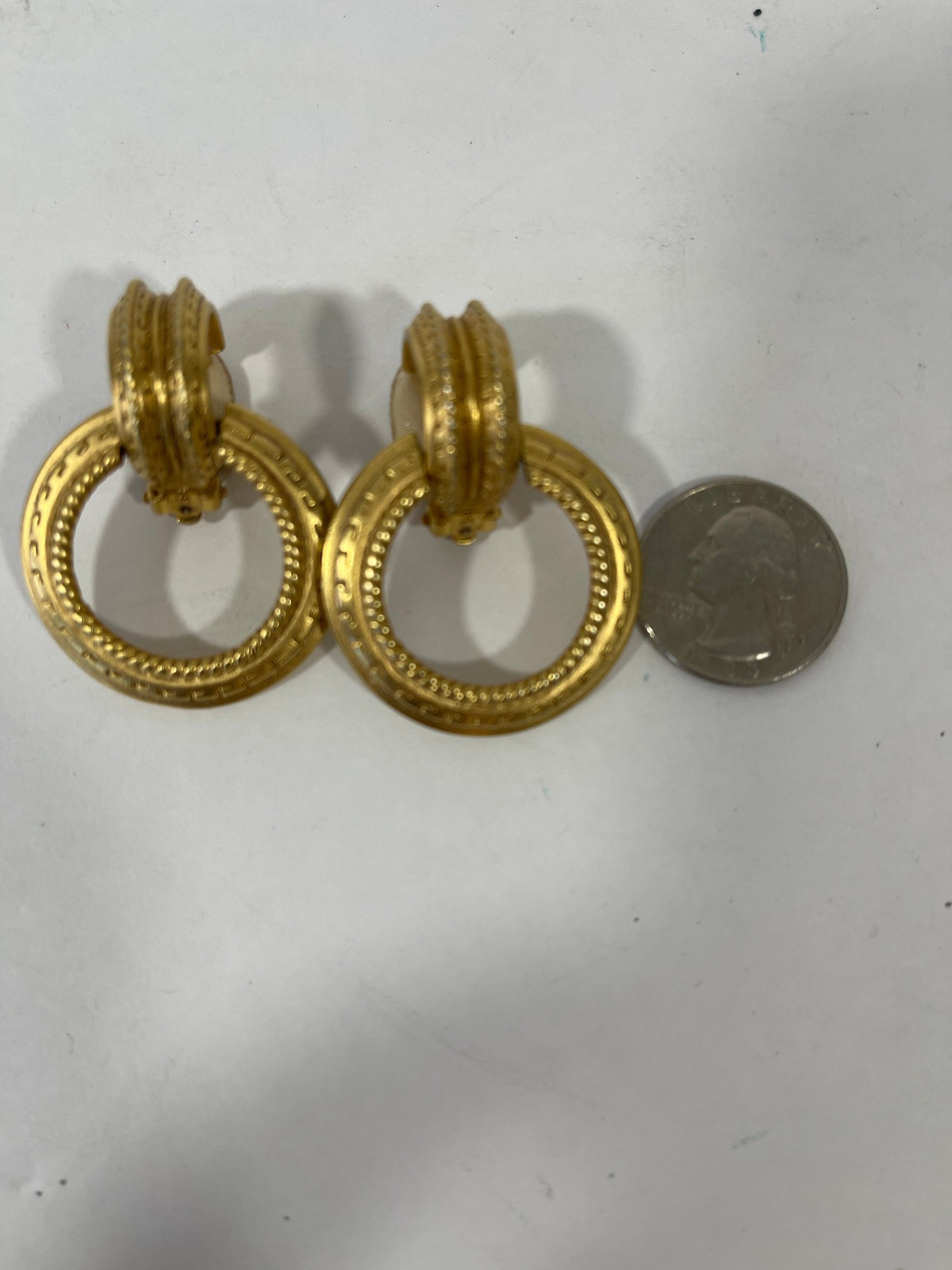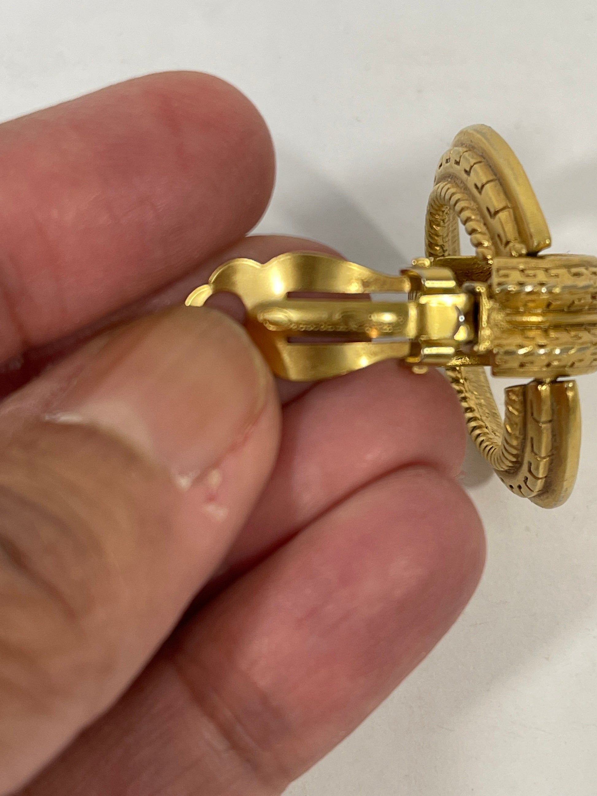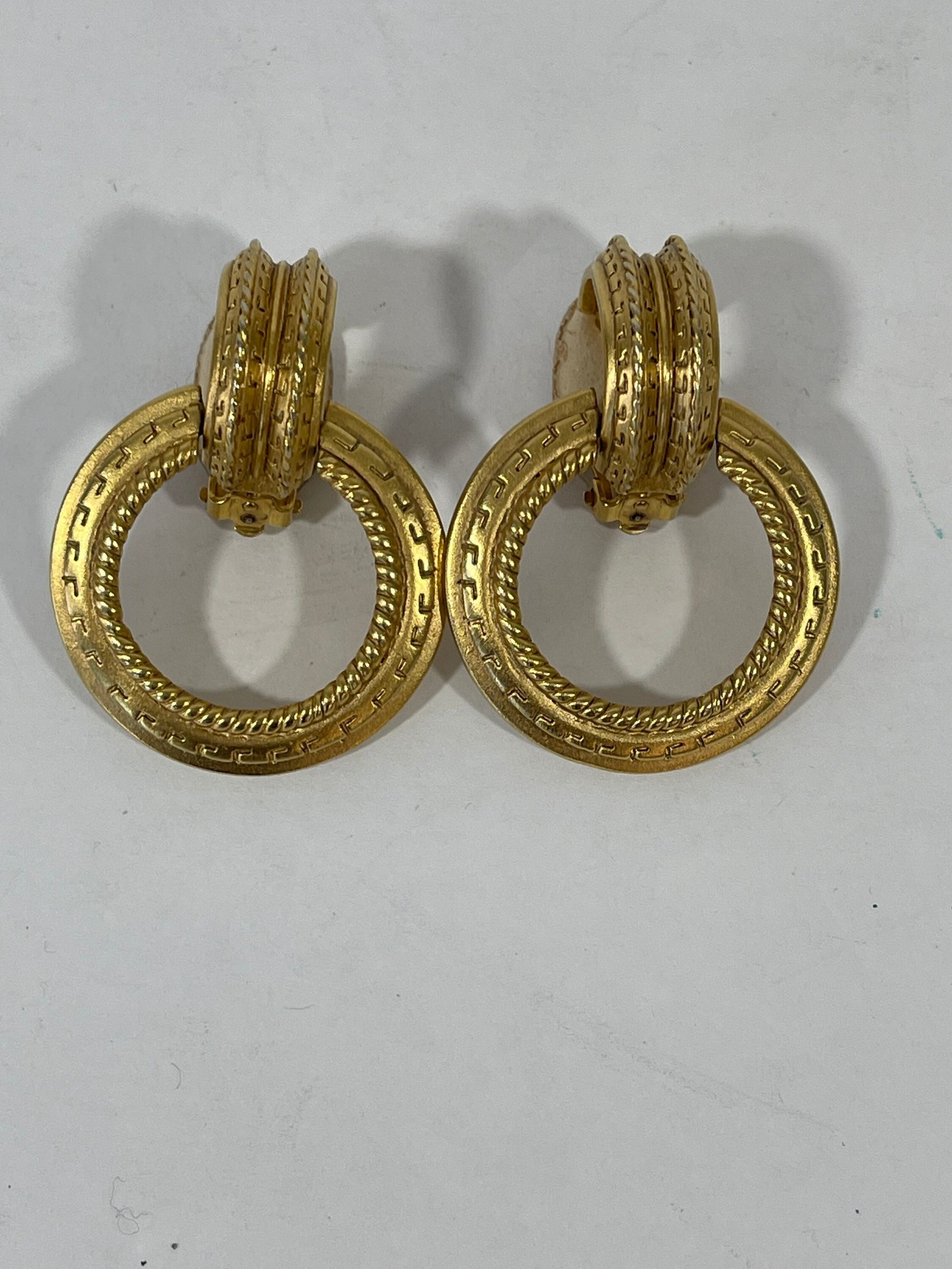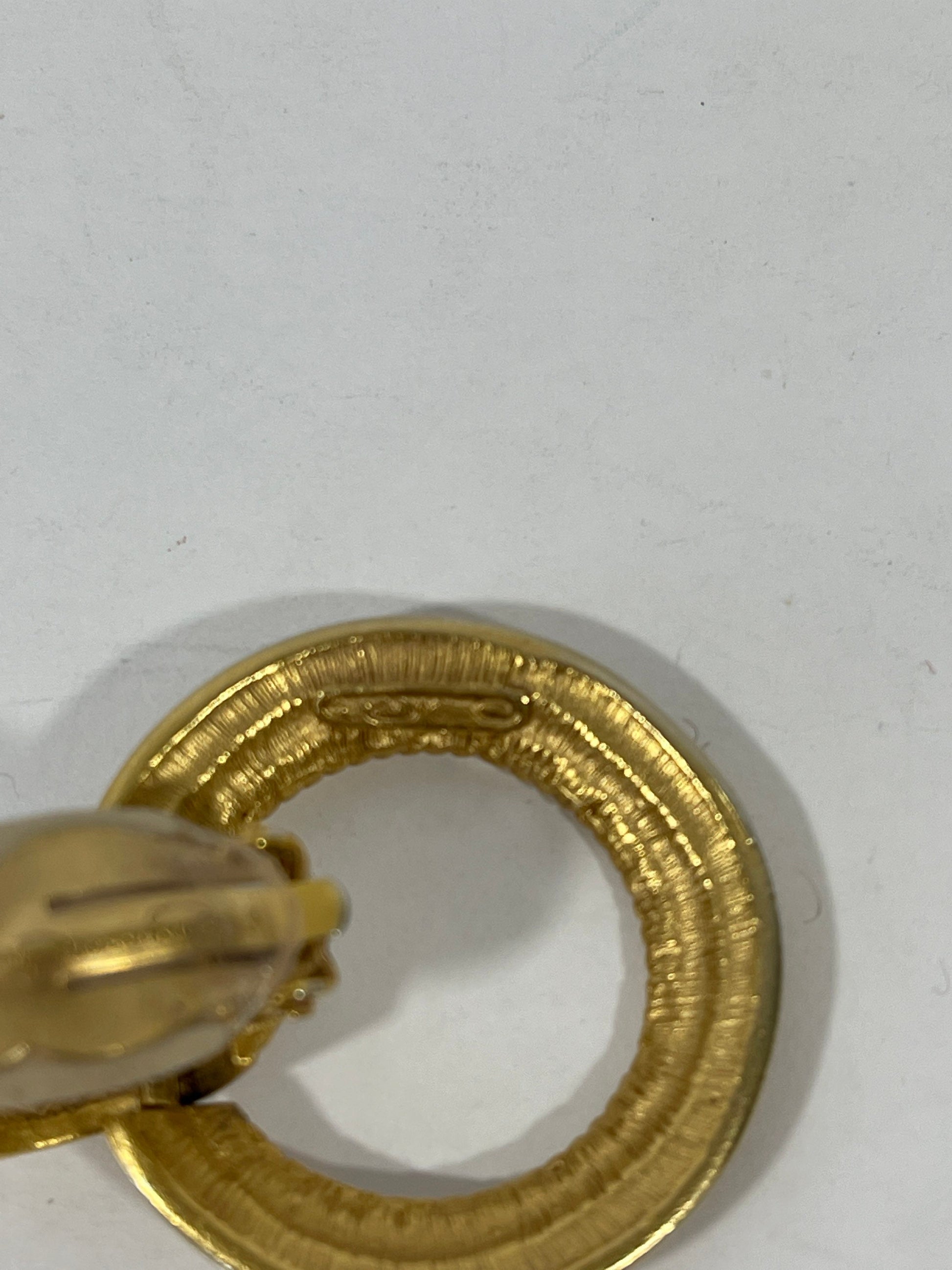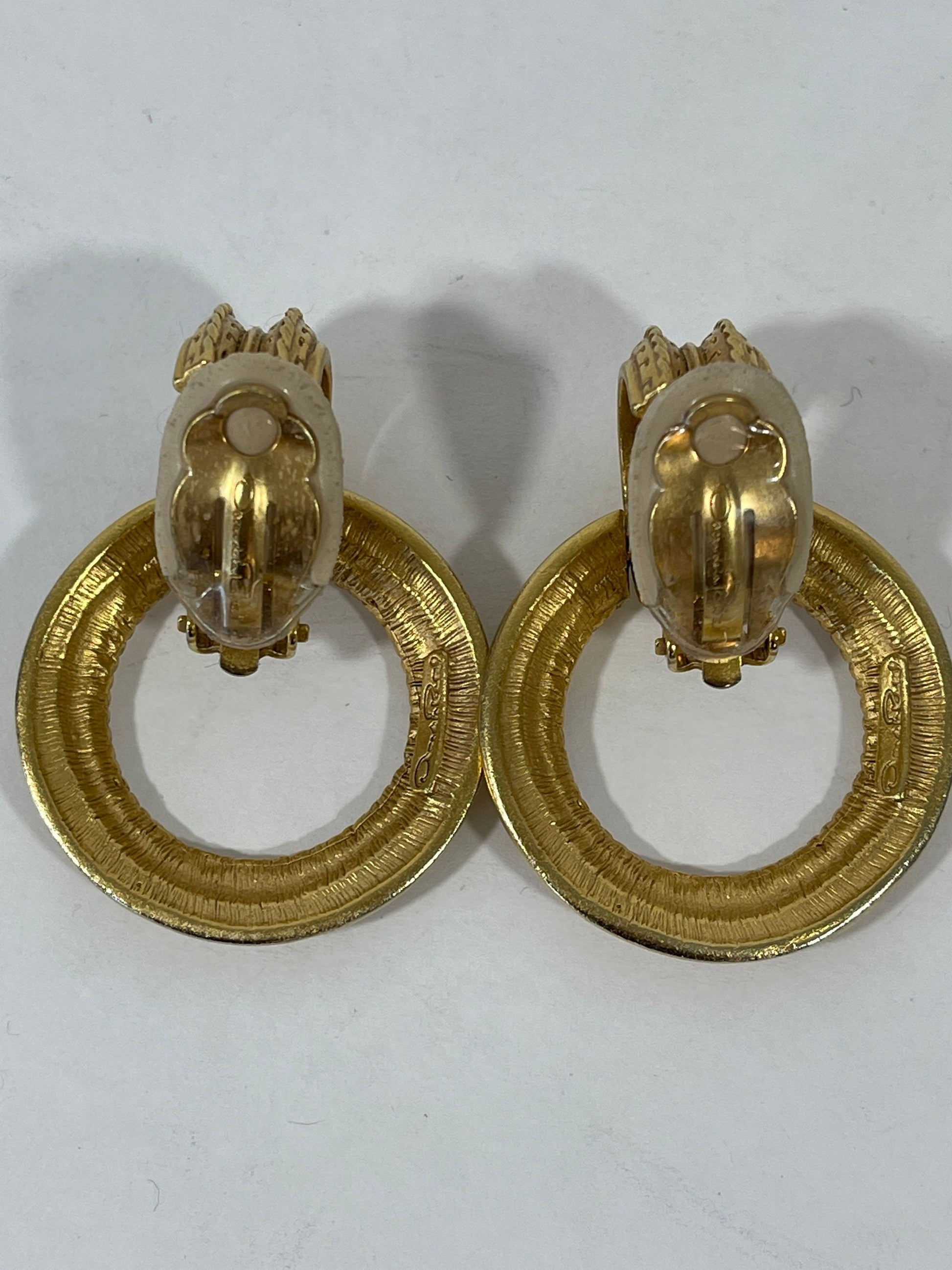 Vtg Oscar De la Renta Gold Tone Etched Door Knocker Clip On Earrings