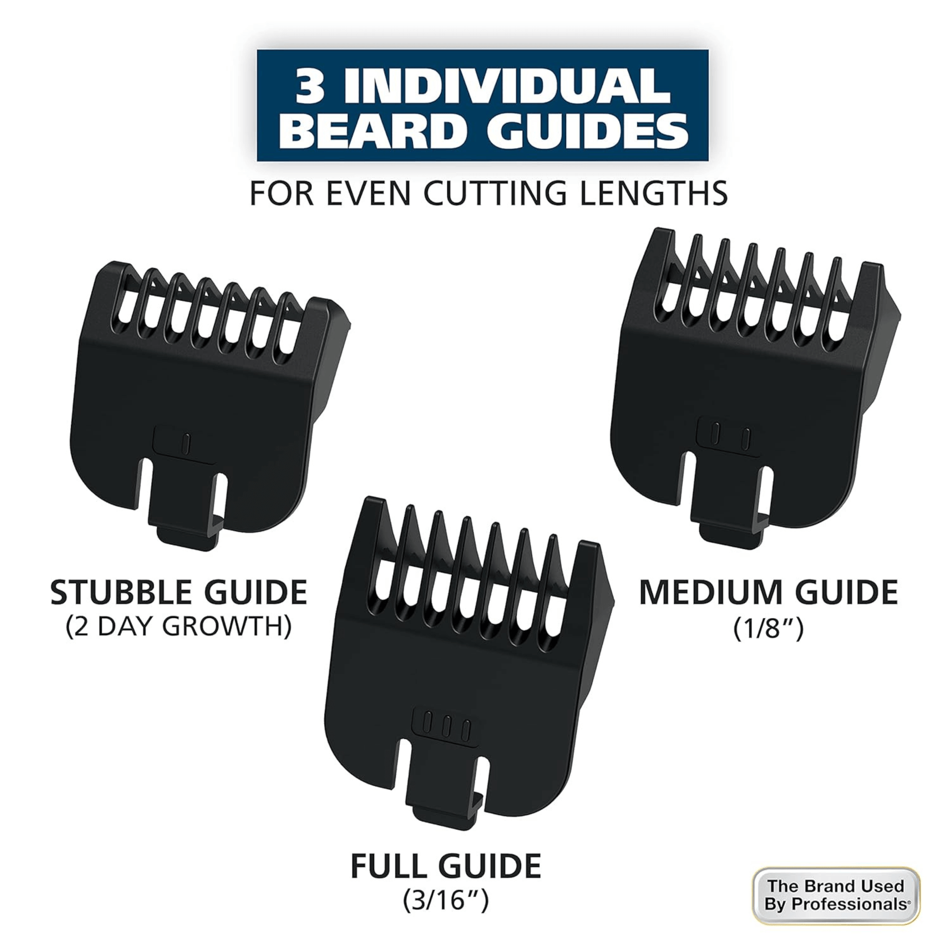 - 9 Piece Grooming Kit - Features 3 individual beard combs and a 5-position adjustable guide comb for various cutting lengths from 1/16” to 1/2"; Our beard guards vary in length from stubble to short & clean, to thick & even