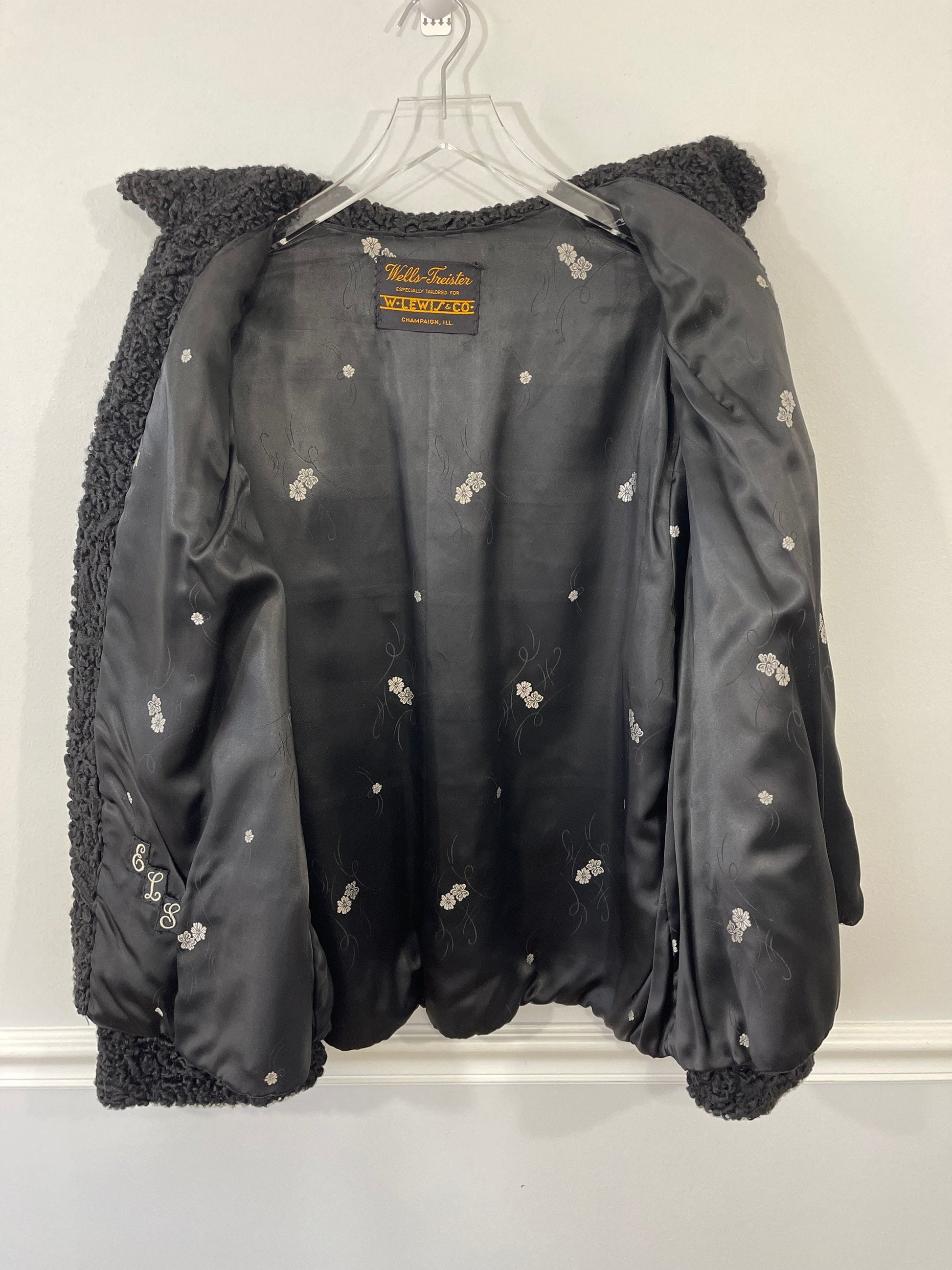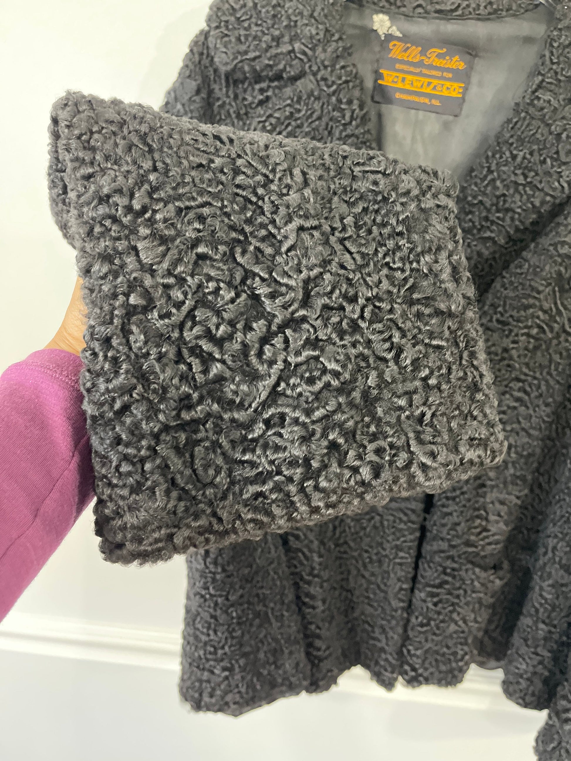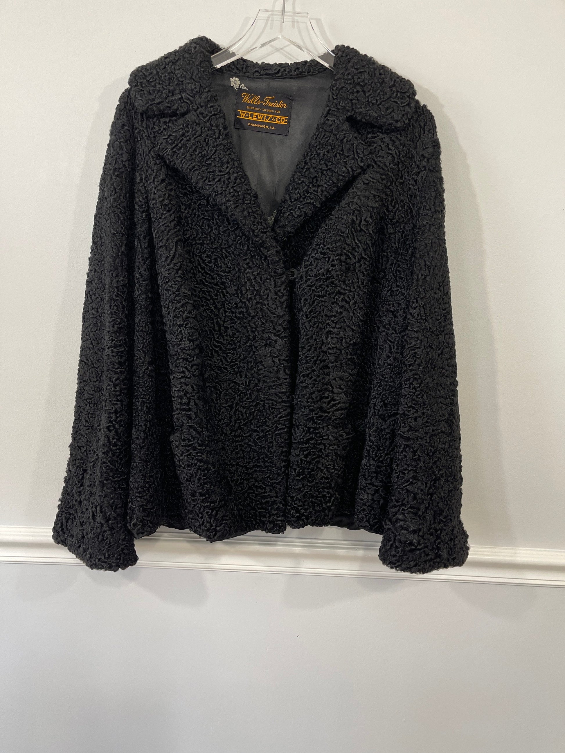 Wells Treister 60’s Black Bell Sleeve Persian Lamb Fur Jacket Sz L/XL